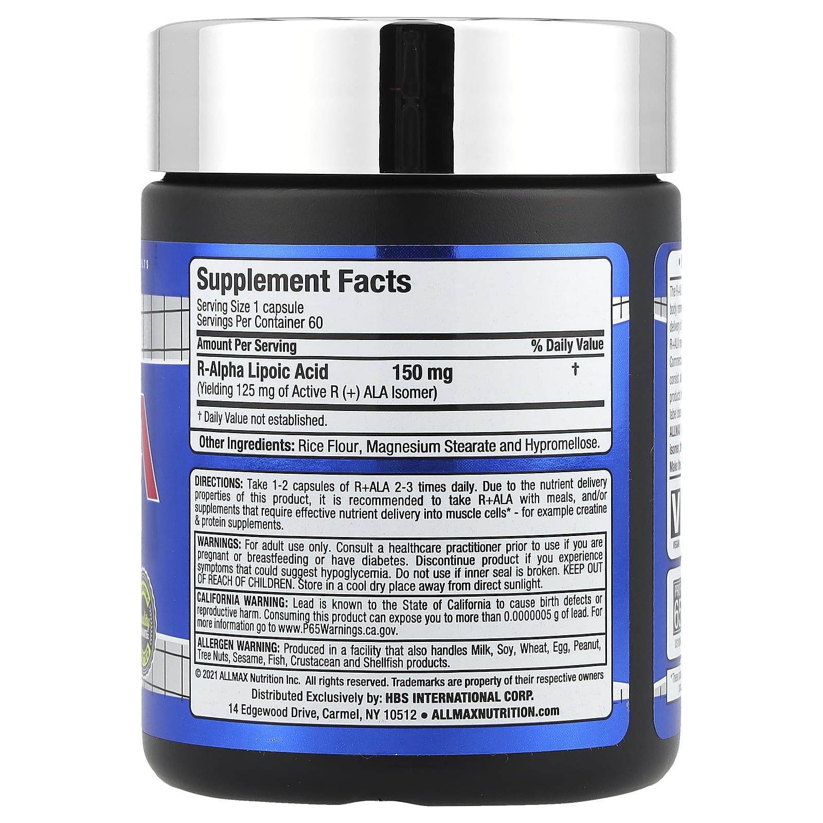 Science – Innovation – Quality – ResultsIncreases Nutrient DeliveryDeactivates Cell Damaging Free-RadicalsOptimizes Insulin ActivityVegan Caps™Quality Guarantee – Purity & Potency TestedDietary SupplementVegancGMP Registered FacilityEvery Lot Lab TestedProfessional Grade SupplementsThe R+ALA version of ALA is the purest form of Alpha Lipoic Acid. R+ALA helps the body remove sugar from the bloodstream and has an impressive ability to aid in the delivery of a wide variety of other nutrients, including creatine. Many people using R+ALA report higher energy levels for sustained periods of time. Commercially available ALA products on the market today tend to be cheaper and consist almost entirely of the S(-) isomer of Alpha Lipoic Acid. These inferior products have significantly weaker nutrient delivery and antioxidant properties. If a label does not specify R+ALA, it isn’t. ALLMAX R+ALA contains a full 125 mg of the pure biologically active R+ isomer, the mitochondrial form found naturally in the human body. Make the switch to the purest most bio-active ALA, ALLMAX R+ALA.
