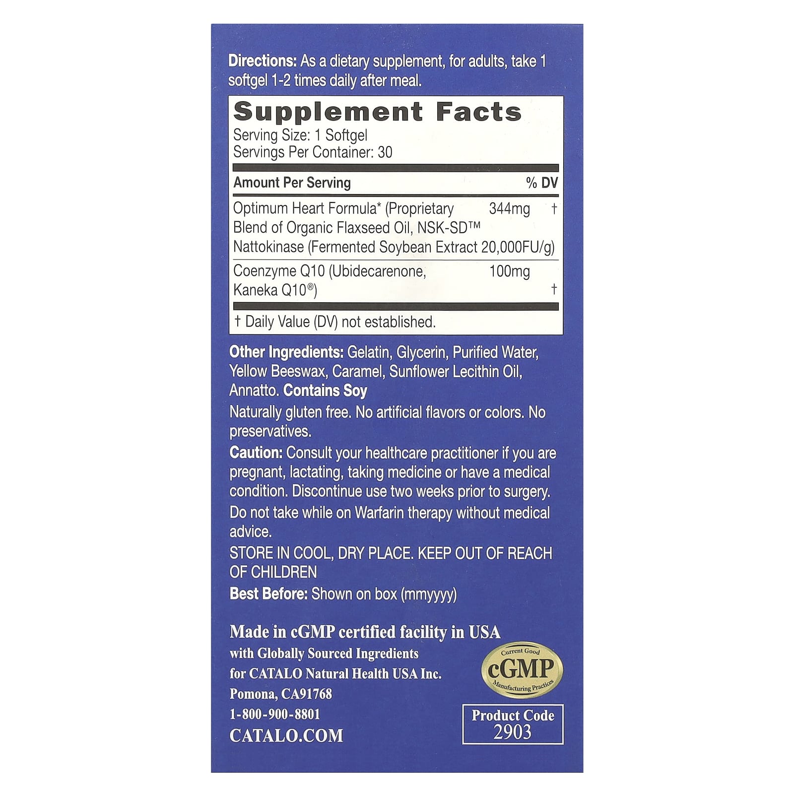 CATALO, Extra CoQ10, Heart Formula with Nattokinase & Flaxseed Oil, 30 Softgels