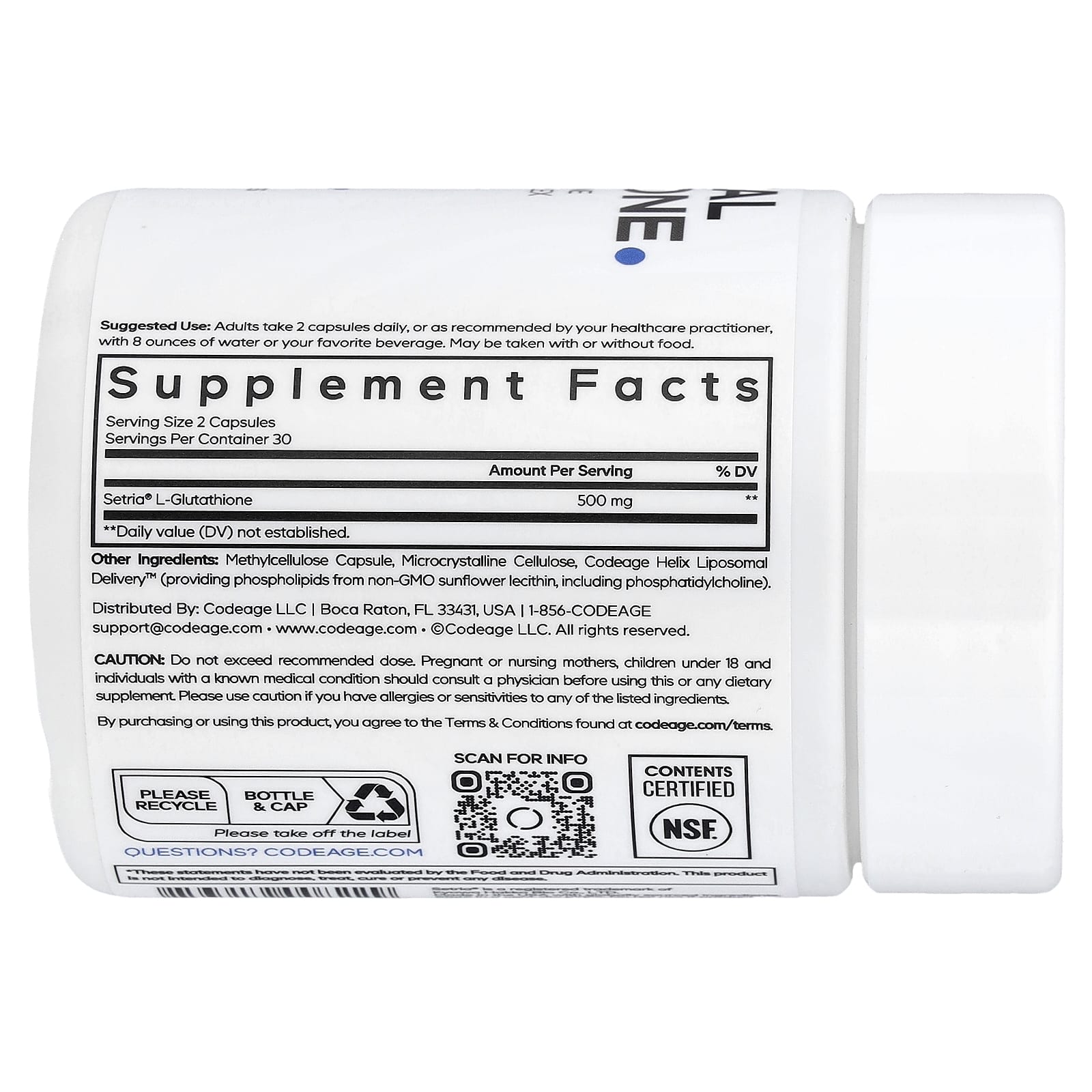 Methylcellulose capsule, microcrystalline cellulose, Codeage Helix Liposomal Delivery™ (providing phospholipids from non-GMO sunflower lecithin, including phosphatidylcholine). Made in the USA with globally sourced ingredients.