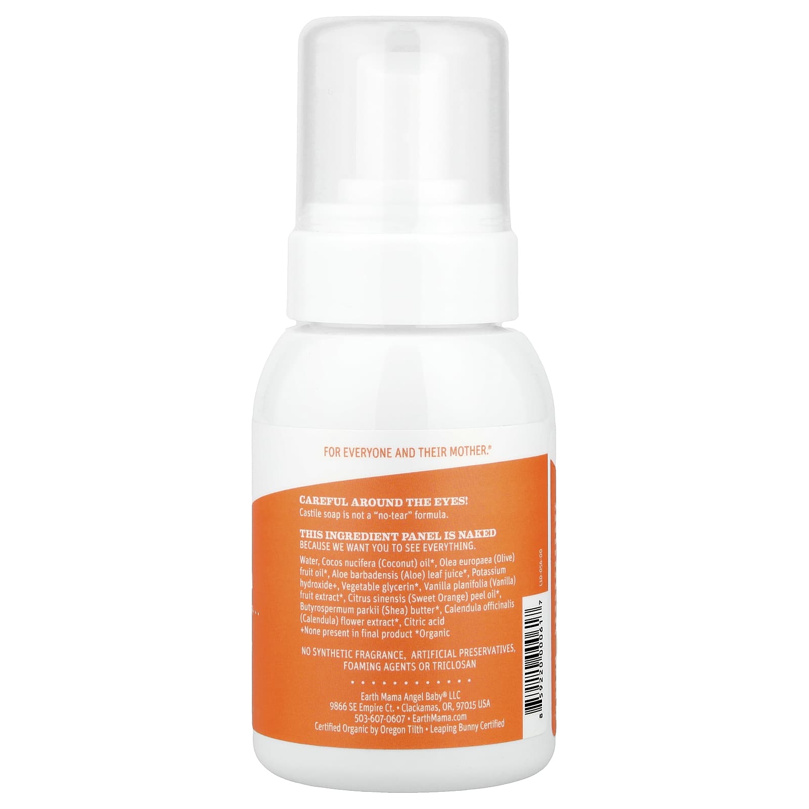 All-Purpose Castile SoapRidiculously Citrus-yHands + Body + All Of ItLeaping Bunny®; Cruelty FreeFor Everyone And Their Mother.®Certified Organic by Oregon TilthGrounded in Nature, Powered by Love®Sweet Orange Baby Wash is the cleaner clean BFF for babies, pregnant mamas, your oldest friends, the puppy … pretty much everyone and their mother! Not to mention a non-toxic multi-use cleaner for fruits and veggies, your kitchen counter, and the entire house – front to back, top to bottom. Chosen by hospitals and dermatologist tested and clinically tested for irritation. Earth Mama’s castile-based washes are uniquely formulated with calendula, shea butter, and glycerin, so skin stays moisturized and safely clean. Made with organic herbs and oils. No secrets. No surprises. This is Real Castile Soap That means you won’t find synthetic surfactants, foaming agents, preservatives or other potentially endocrine-disrupting chemicals. It’s 100% bona fide liquid castile soap that foams naturally.