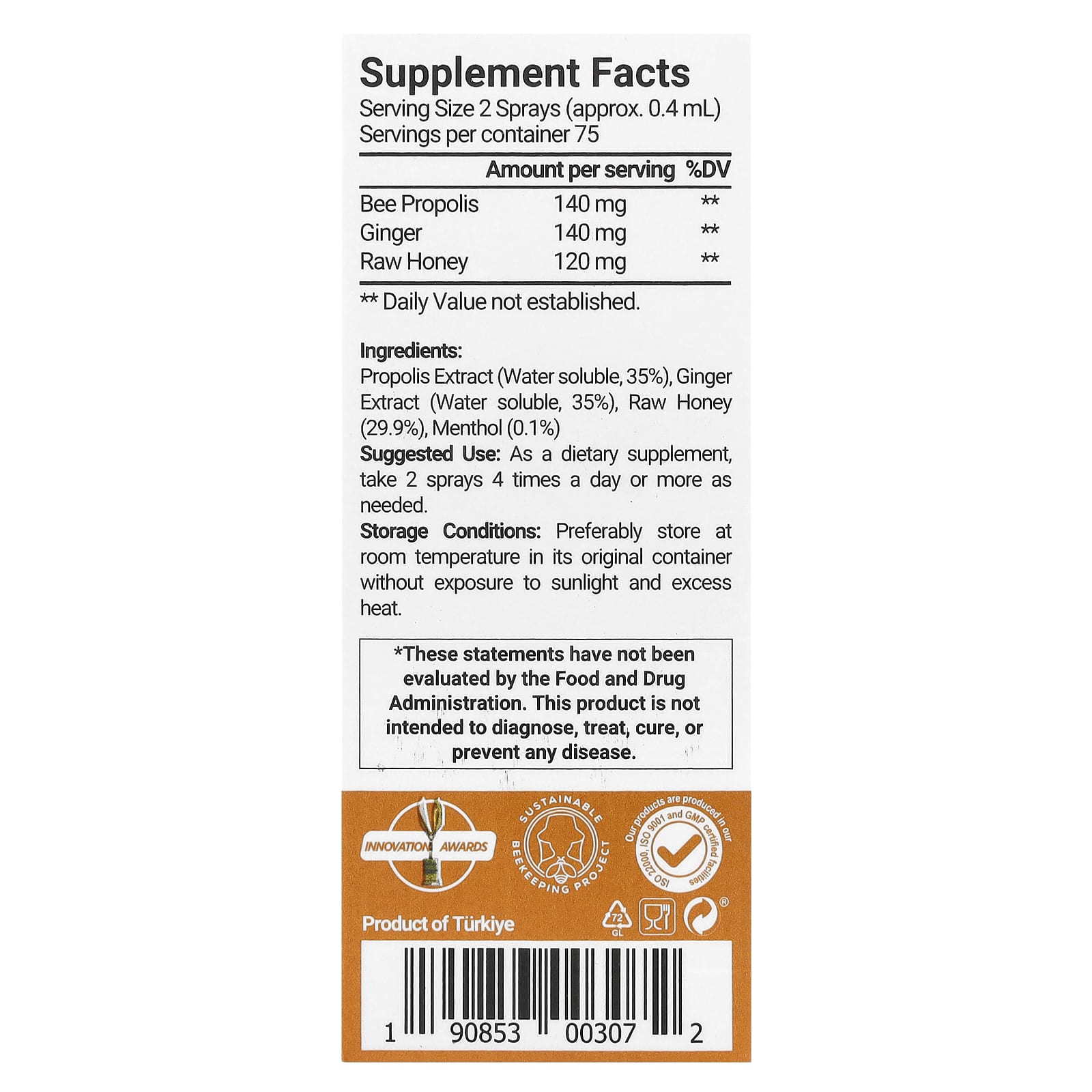 Bee & You, Propolis Ginger Throat Spray, 1 fl oz (30 ml)