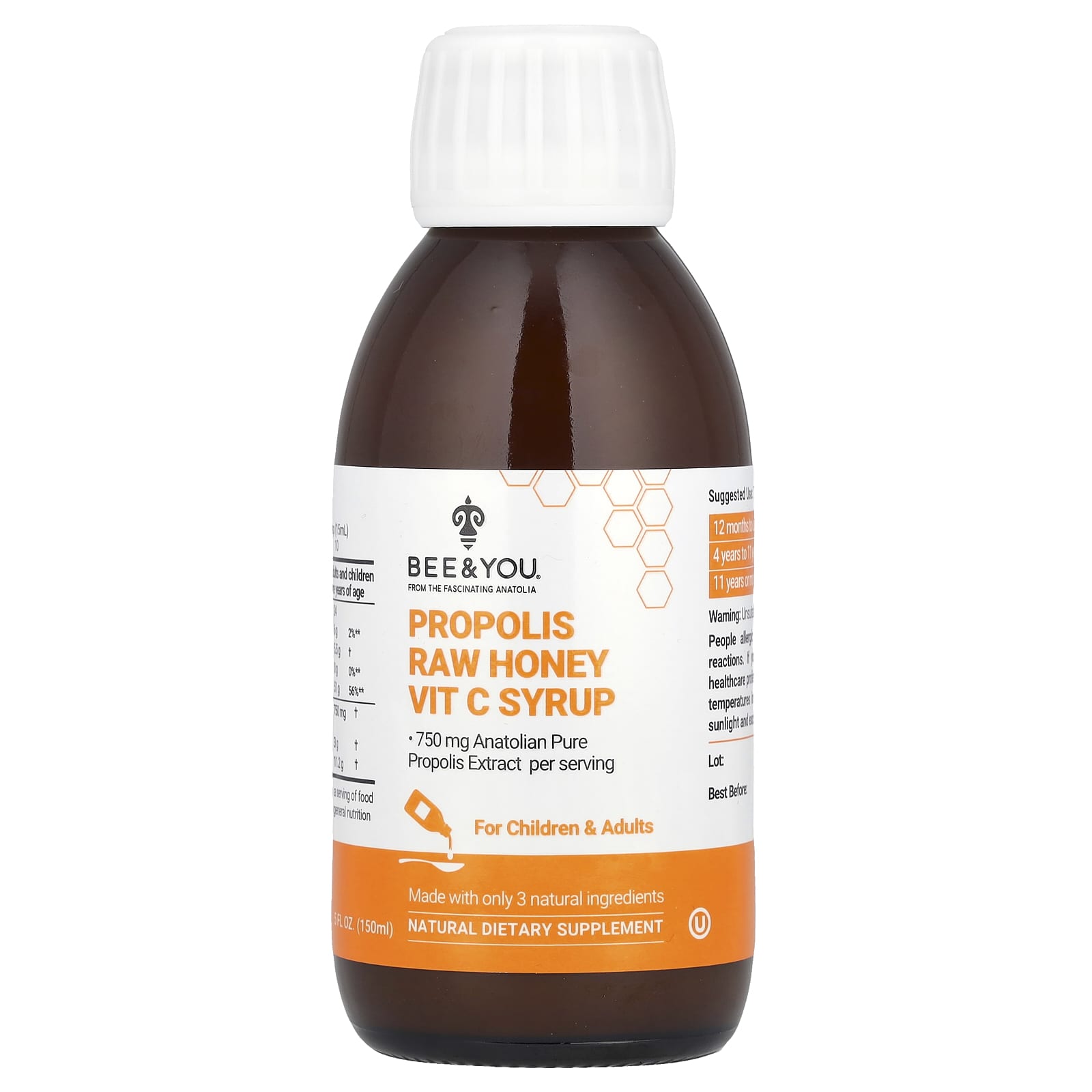 Bee & You, Propolis Raw Honey Vit C Syrup, 5 fl oz (150 ml)
