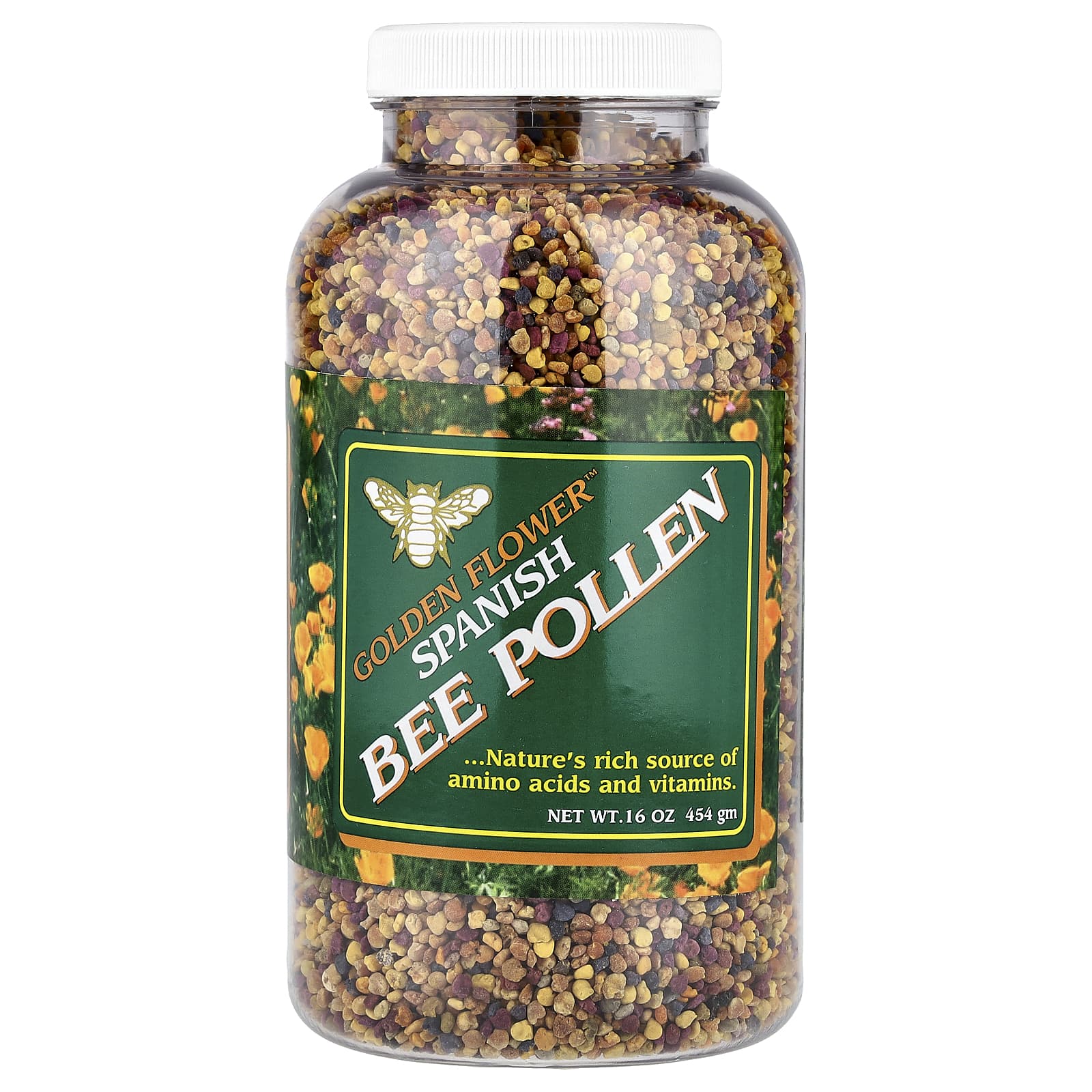 Nature’s Rich Source of Amino Acids and VitaminsServing Your Needs Since 1973From the wildflower filled, pristine Andalusian mountains of Spain comes this Golden Flower Bee Pollen. First it is carefully hand-gathered, then dried naturally in the sun and immediately packed in nitrogen-flushed containers to maintain freshness and potency. This results in a wonderfully tasty pollen which is raw and unheated, and contains no preservatives and no insecticides.Our Spanish pollen is a rich source of amino acids, the building blocks of protein, hence many people take some prior to exercising or working out for energy enhancement. It also has a healthy complement of vitamins, minerals, trace elements, carbohydrates and enzymes.