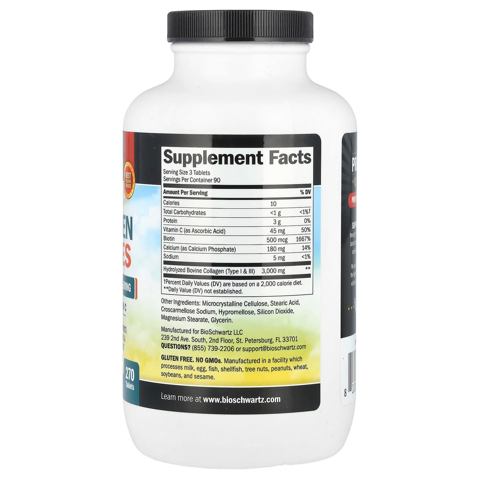 BioSchwartz, Hydrolyzed Collagen Peptides with Biotin and Vitamin C, 270 Tablets