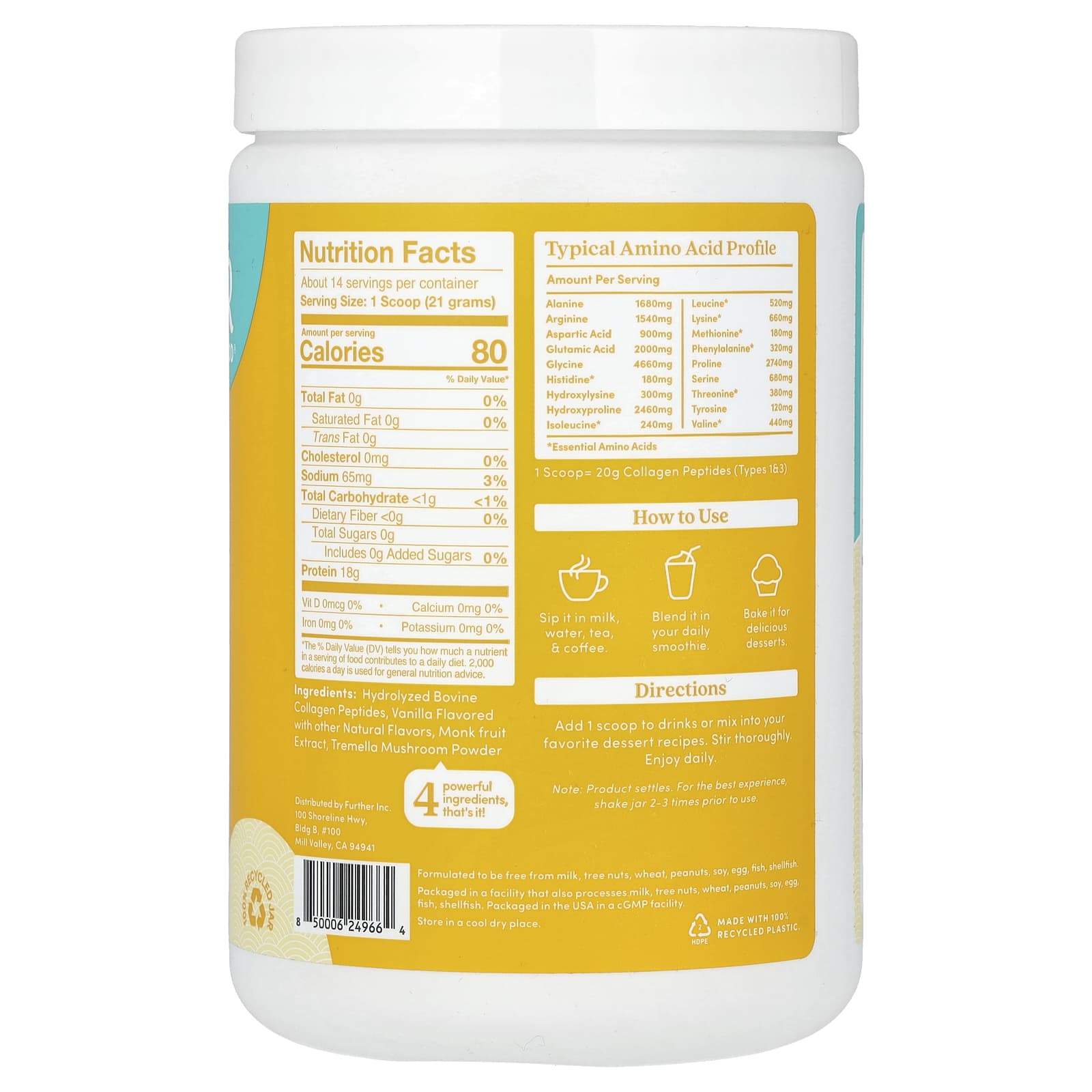 Further Food, Grass-Fed Collagen Peptides + Tremella Mushroom, Vanilla, 10.37 oz (294 g)