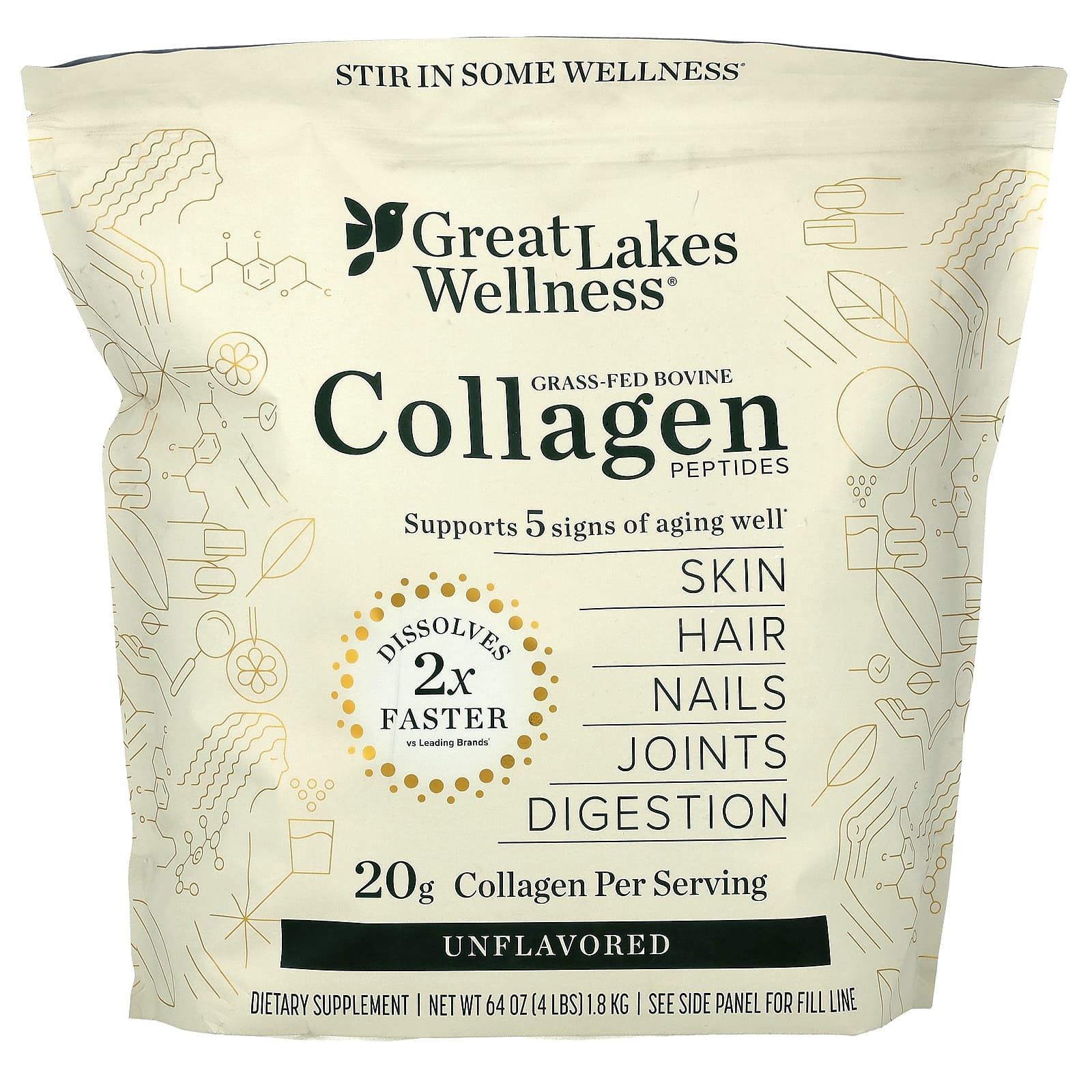 Great Lakes Wellness, Grass-Fed Bovine Collagen Peptides, Unflavored, 64 oz (1.8 kg)