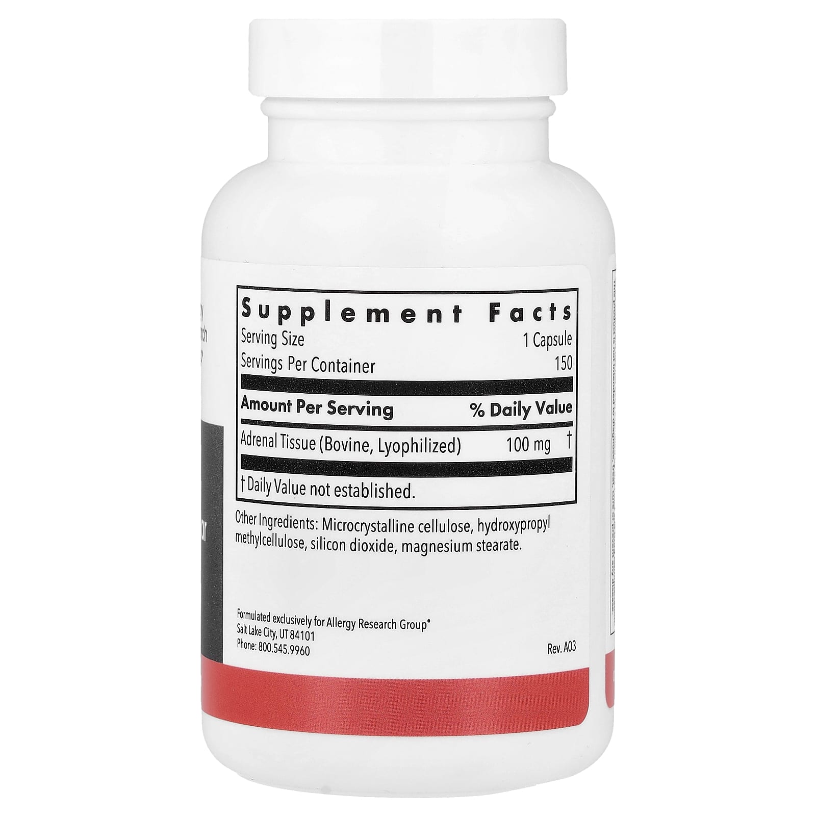 Allergy Research Group, Adrenal, Natural Glandular, 150 Vegetarian Capsules (100 mg per Capsule)