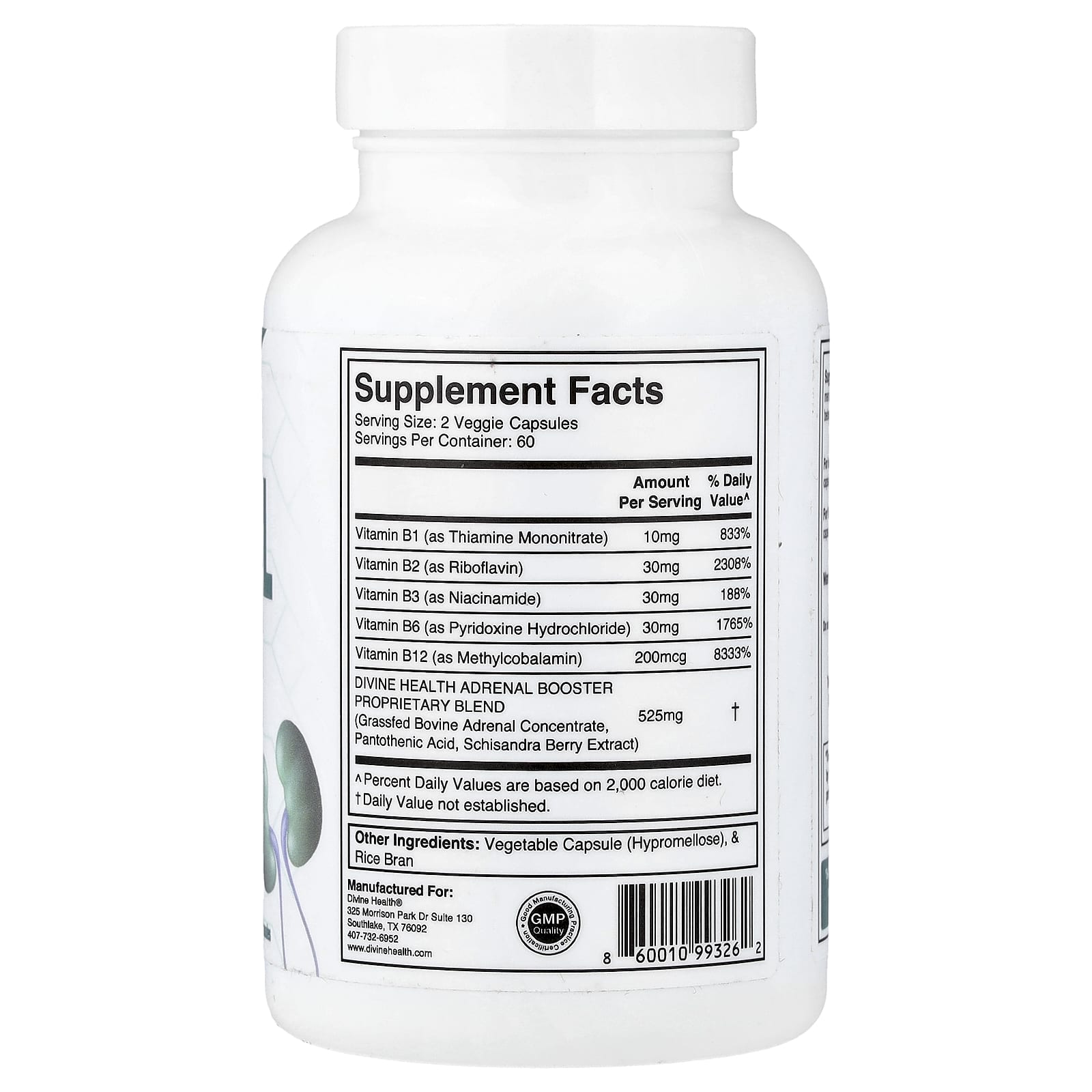 Supports Adrenal HealthSupports Healthy Cortisol Levels Supports Healthy Energy LevelsDietary SupplementGMP Quality; Good Manufacturing Practices CertificationUnlock your full potential with Divine Health’s Adrenal Booster, a premium supplement crafted to support the unique adrenal health needs of both men and women. This advanced formula combines powerful natural ingredients designed to help manage stress, boost energy, and enhance vitality.