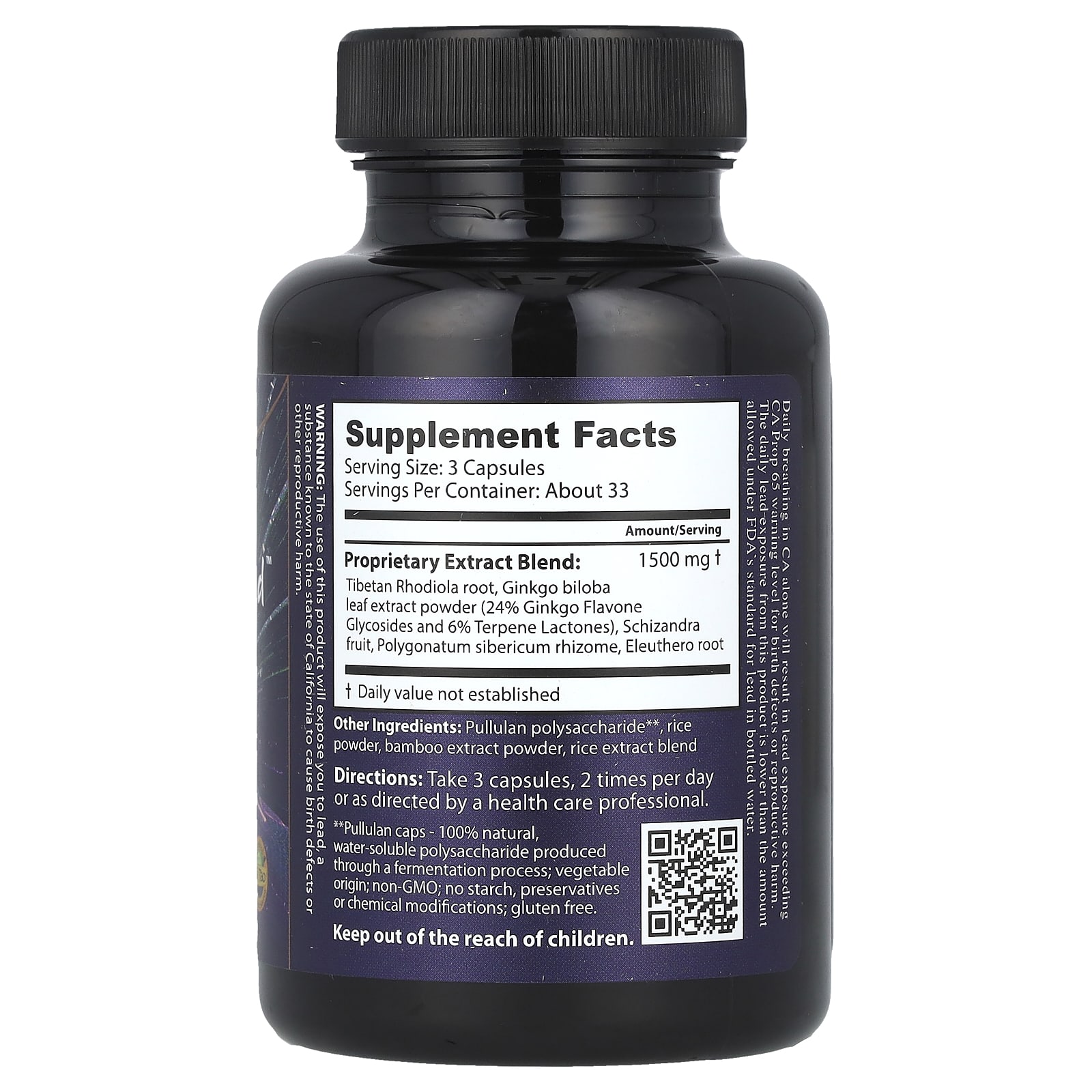 Pullulan polysaccharide**, rice powder, bamboo extract powder, rice extract blend.**Pullulan caps – 100% natural, water-soluble polysaccharide produced through a fermentation process; vegetable origin; non-gmo; no starch, preservatives or chemical modification; gluten free.