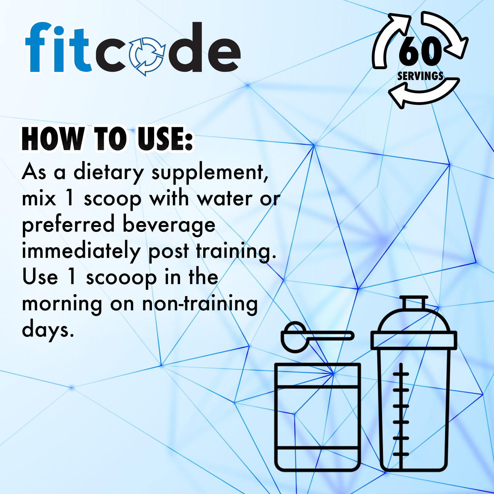 As a dietary supplement, mix 1 scoop with water or preferred beverage immediately post training. Use 1 scoop in the morning on non-training days.Mix it – Just add 1 scoop to 16 oz of water or your favorite beverage.