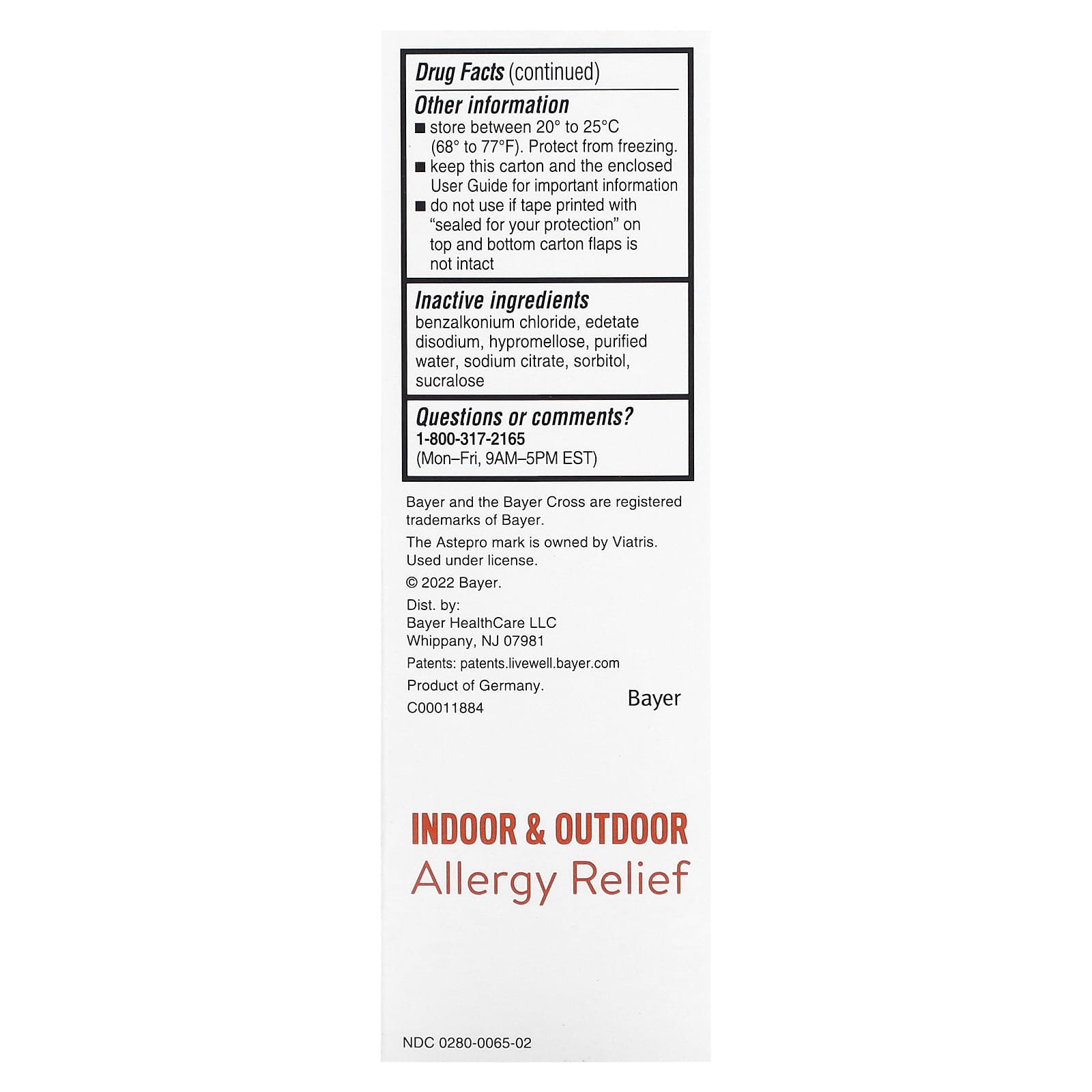 Azelastine HCl 205.5 mcg Per SprayFull Prescription StrengthSteroid FreeUp to 24 Hour Relief of: Nasal Congestion, Runny Nose, Sneezing, Itchy Nose120 Metered SpraysAlcohol-FreeIndoor & Outdoor Allergy ReliefAstepro® is a first-of-its-kind, steroid-free nasal antihistamine spray that starts working in 30 minutes for fast-acting 24-hour relief.Uses: Temporarily relives these symptoms due to hay fever or other upper respiratory allergies:nasal congestionrunny nosesneezingitchy nose