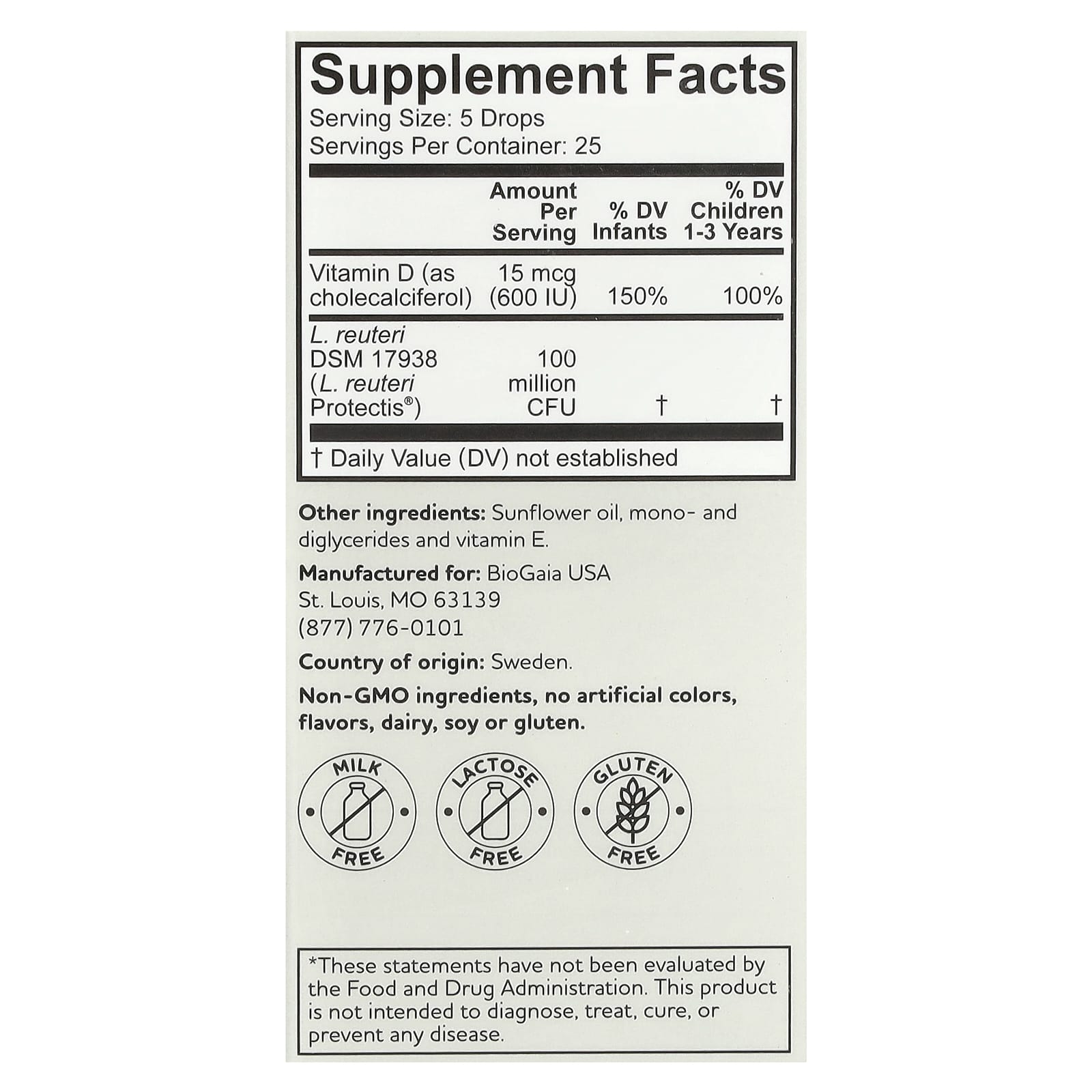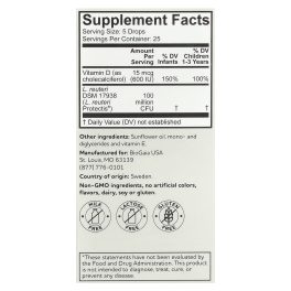 Gut & Immune HealthClinically Proven600 IU Vitamin D3Probiotic SupplementProbiotic Baby CareMilk FreeLactose FreeGluten FreeGroundbreaking Probiotics Driven By ScienceProbiotic Drops with Vitamin D3 BioGaia® Protectis® BABY drops Immune Active is a dietary supplement containing the patented probiotic Limosilactobacillus reuteri Protectis® (L. reuteri DSM 17938) and vitamin D3 that contributes to the normal function of the immune system.L. reuteri Protectis helps the good guys keep a natural balance in the gut and has been tested in more than 150 clinical trials and proven safe & effective for children.