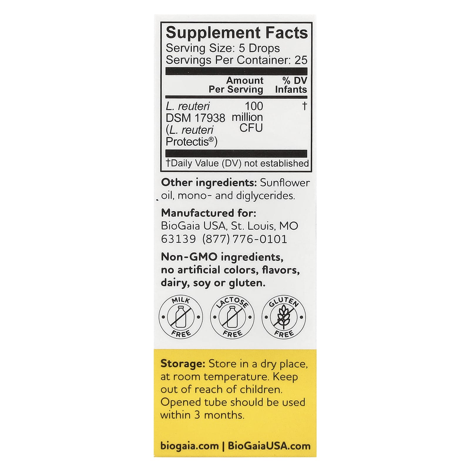 For Colic & Digestive ComfortClinically ProvenProbiotic SupplementProbiotic Baby CareMilk FreeLactose FreeGluten FreeGroundbreaking Probiotics Driven by ScienceBioGaia® Protectis® baby drops is a dietary supplement containing the patented lactic acid bacterium Limosilactobacillus** reuteri Protectis® (L. reuteri DSM 17938) that helps the good microorganisms restore a natural balance in the gut. Because L. reuteri Protectis naturally colonizes humans it has a strong adaptation to persist and interact with humans. L. reuteri Protectis has been tested in 150 clinical trials and proven effective and safe for children. **Previously named Lactobacillus