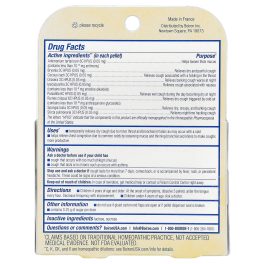 Drug FactsActive ingredients** (in each pellet)Purpose*Antimonium tartaricum 6C HPUS (0.05 mg)(contains less than 10-13 mg antimony)Helps loosen thick mucusBryonia 3C HPUS (0.05 mg)Relieves dry and painful cough Coccus cacti 3C HPUS (0.05 mg)Relieves cough associated with a tickling in the throat Drosera 3C HPUS (0.05 mg)Relieves barking cough worse at night Ipecacuanha 3C HPUS (0.05 mg)(contains less than 10-8 mg emetine alkaloids)Relieves cough associated with nauseaPulsatilla 6C HPUS (0.05 mg)Relieves wet cough during the day becoming dry at night Rumex crispus 6C HPUS (0.05 mg)(contains less than 10-16 mg anthraquinone glycosides)Relieves dry cough triggered by cold airSpongia tosta 3C HPUS (0.05 mg)Relieves dry, croupy, and barking cough Sticta pulmonaria 3C HPUS (0.05 mg)Relieves nighttime hacking coughInactive Ingredients: Lactose, sucrose. Contains 0.25 g of sugar per dose.The letters “HPUS” indicate that the component in this product is officially monographed in the Homeopathic Pharmacopoeia of the United States.*Claims based on traditional homeopathic practice, not accepted medical evidence. Not FDA evaluated.**C, K, CK, and X are homeopathic dilutions.