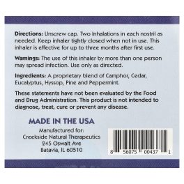 Unscrew cap. Two Inhalations in each nostril as needed. Keep inhaler tightly closed when not in use. This inhaler is effective for up to three months after first use.