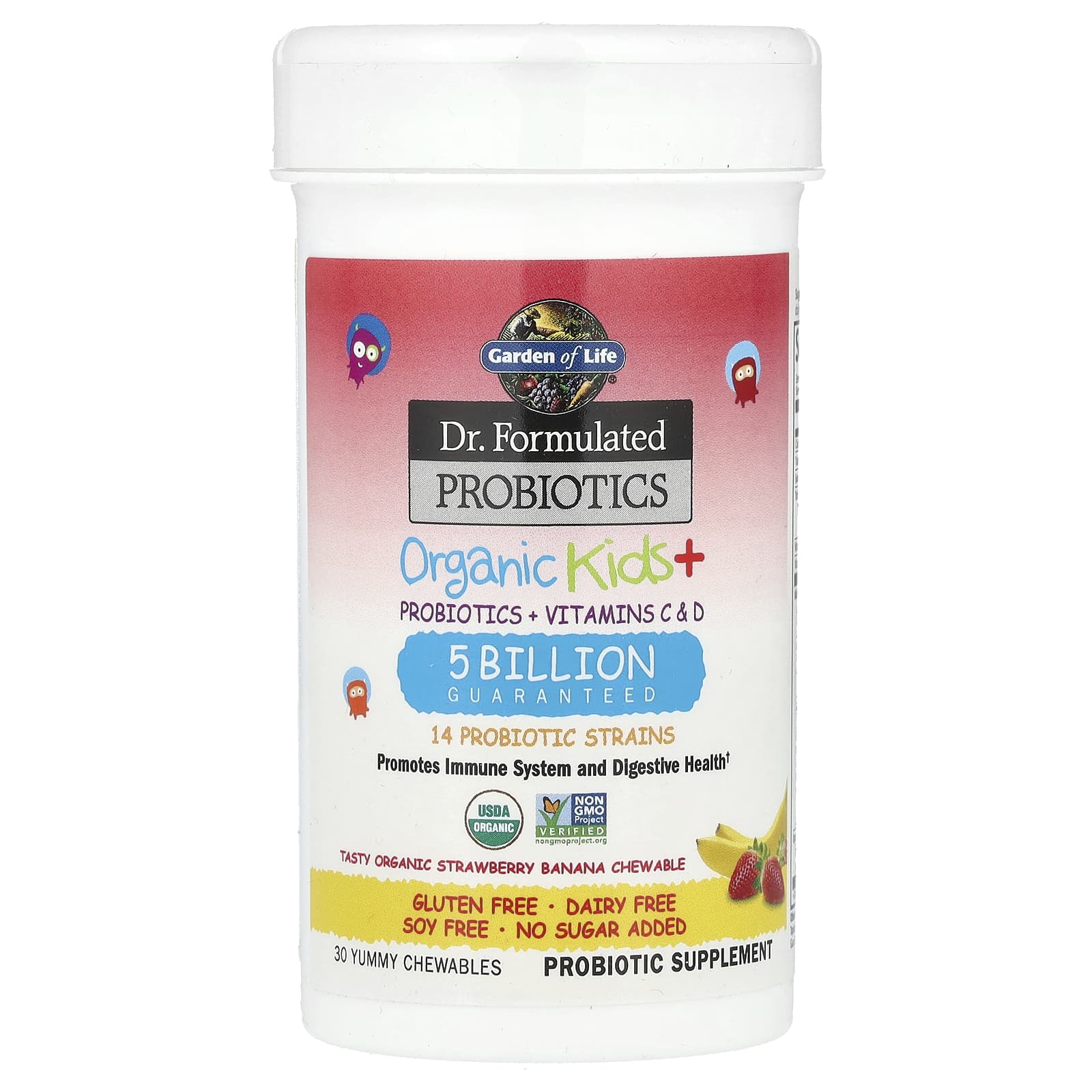 Garden of Life, Dr. Formulated Probiotics, Organic Kids + Chewables, Tasty Organic Strawberry Banana, 30 Yummy Chewables