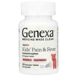 Genexa, Kids’ Pain & Fever, Ages 2-11, Grape, 80 mg, 24 Chewable Tablets