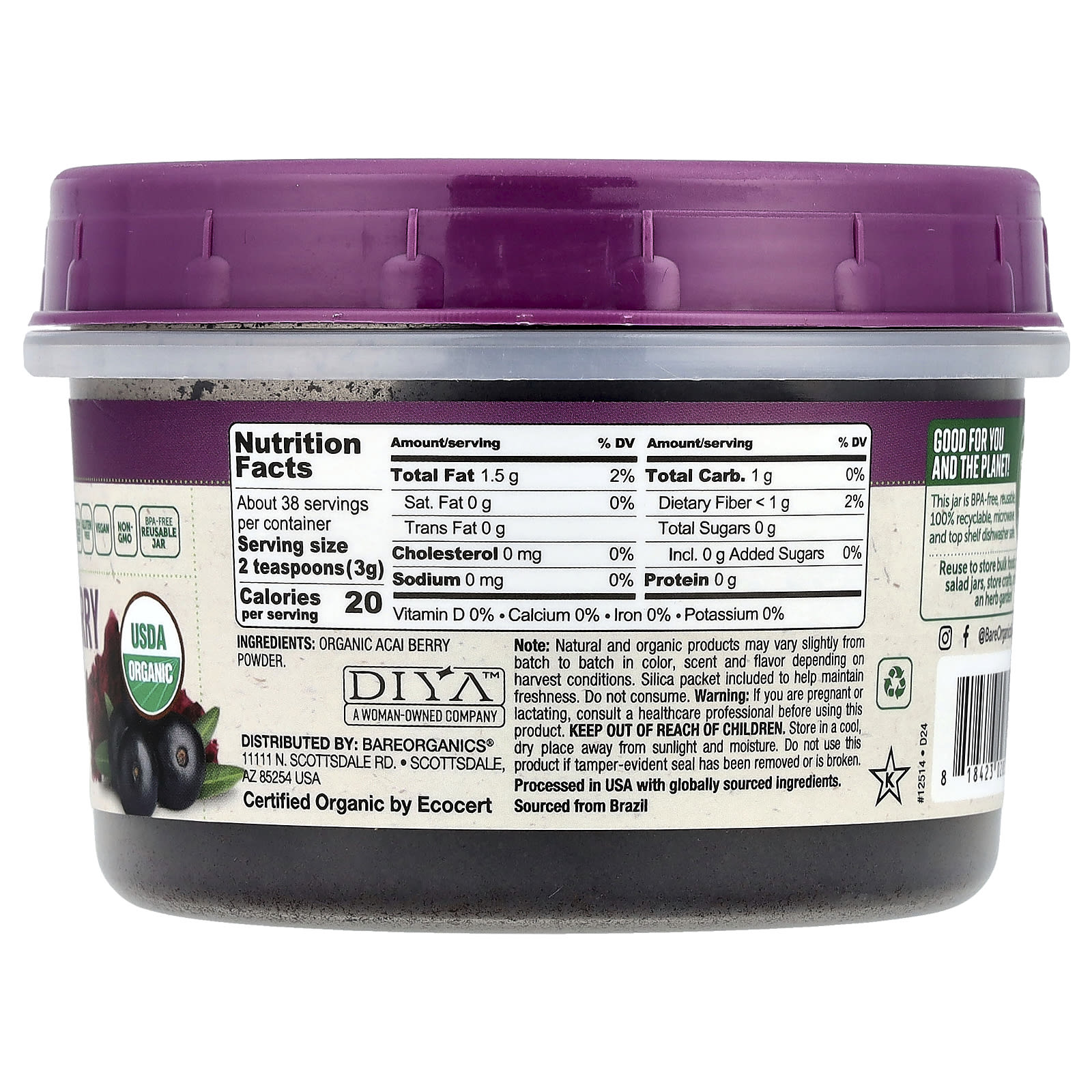 BareOrganics, Freeze-Dried Raw Organic Acai Berry Powder, 4 oz (114 g)