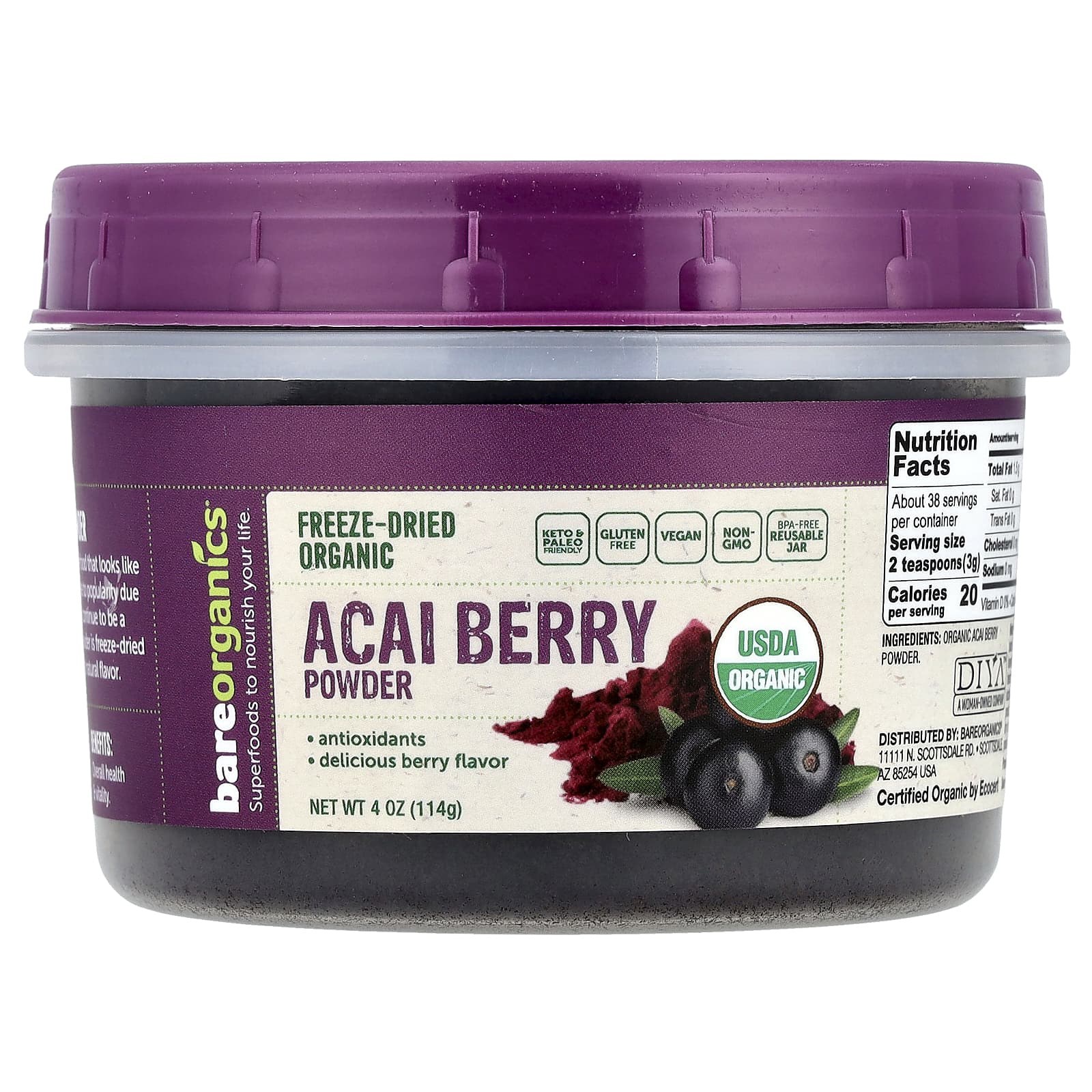 BareOrganics, Freeze-Dried Raw Organic Acai Berry Powder, 4 oz (114 g)