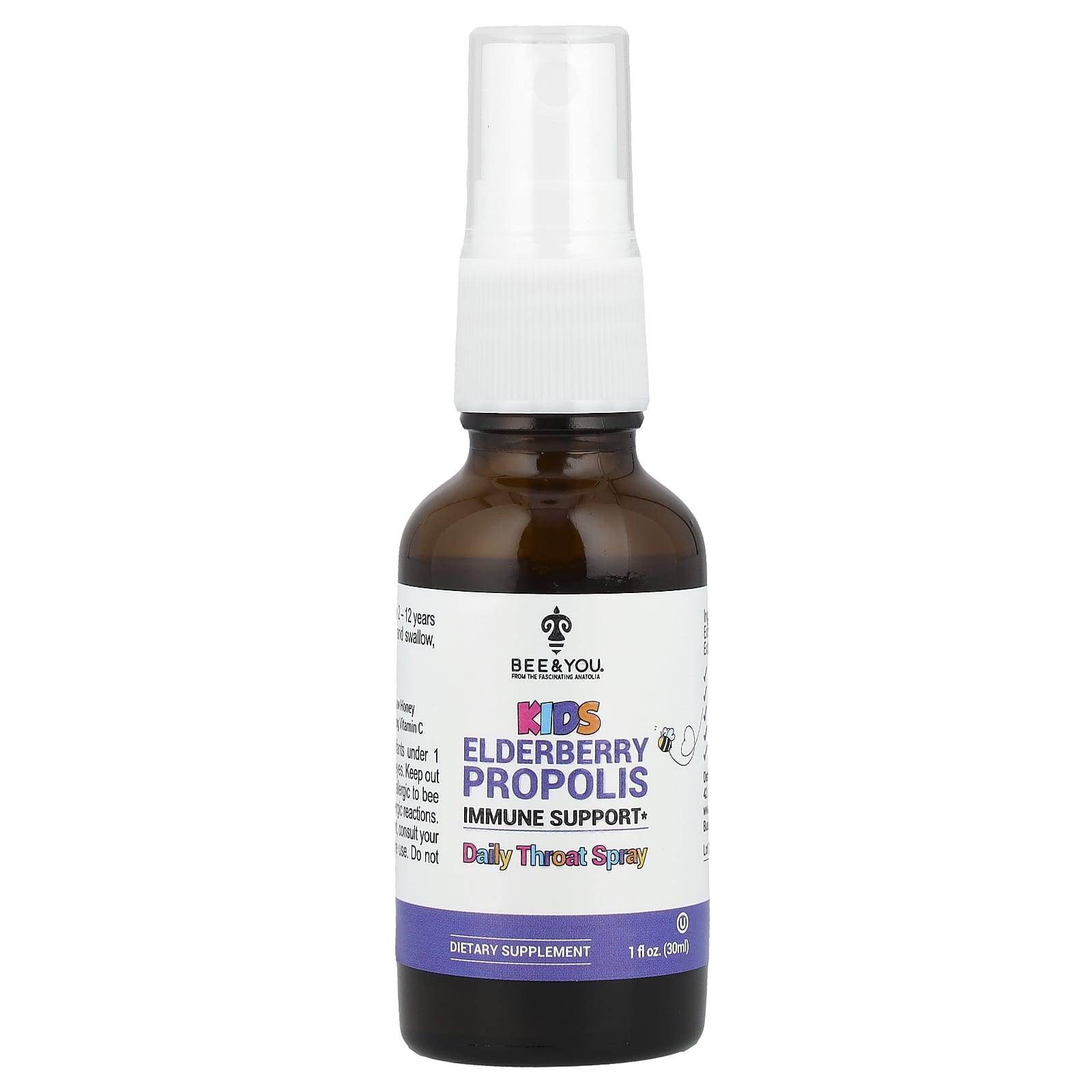 Bee & You, Kids Elderberry Propolis Daily Throat Spray, 1 fl oz (30 ml)