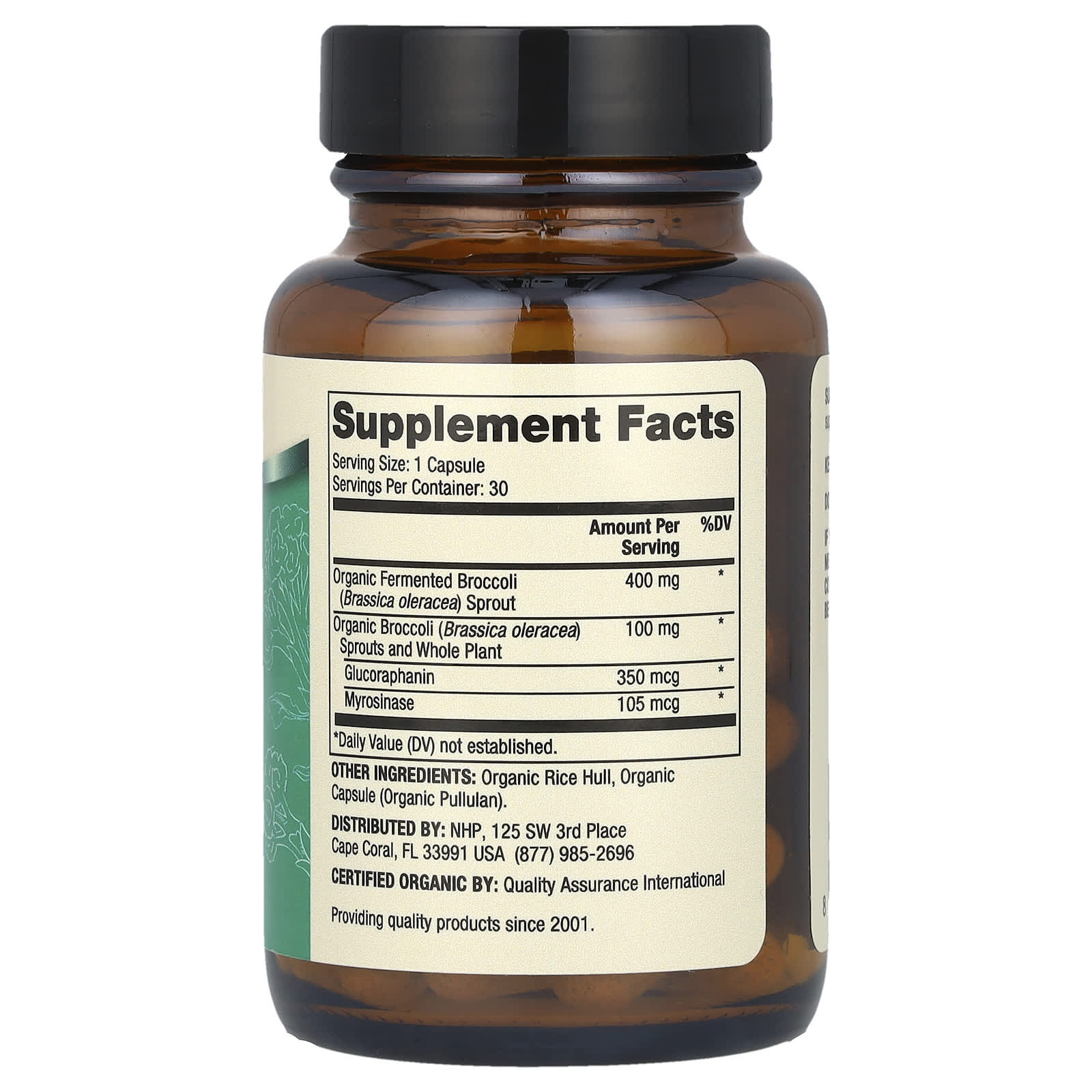Dietary SupplementUSDA Organic Certified Organic by: Quality Assurance International Providing Quality Products Since 2001Rich in vitamins, minerals and powerful phytochemicals, broccoli and broccoli sprouts are two of the healthiest foods you can eat. They contain two compounds – glucoraphanin and myrosinase – that combine to produce a unique compound called sulforaphane, a super-antioxidant that helps protect your cells, tissues and DNA from oxidative damage. Unfortunately, when you heat broccoli, it destroys the myrosinase. Our Organic Fermented Broccoli Sprouts is gently dried and powdered to preserve the myrosinase, glucoraphanin and all its other nutrients so you can enjoy the benefits of this powerful team.