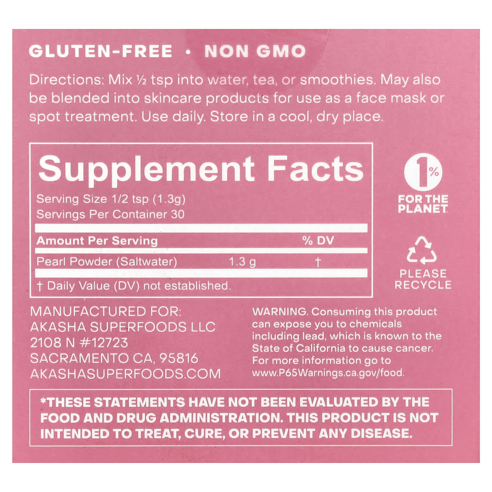 Made with Seawater PearlsHair, Skin, NailsGluten FreeNon GMOA Timeless TreasureElevate your self-care ritual with the opulent touch of seawater Pearl Powder. Renowned for centuries in beauty traditions around the world, this ocean-based powder can be mixed into your favorite beverage or topical skincare product. It’s a simple way to sprinkle a bit of sparkle into your self-care routine.