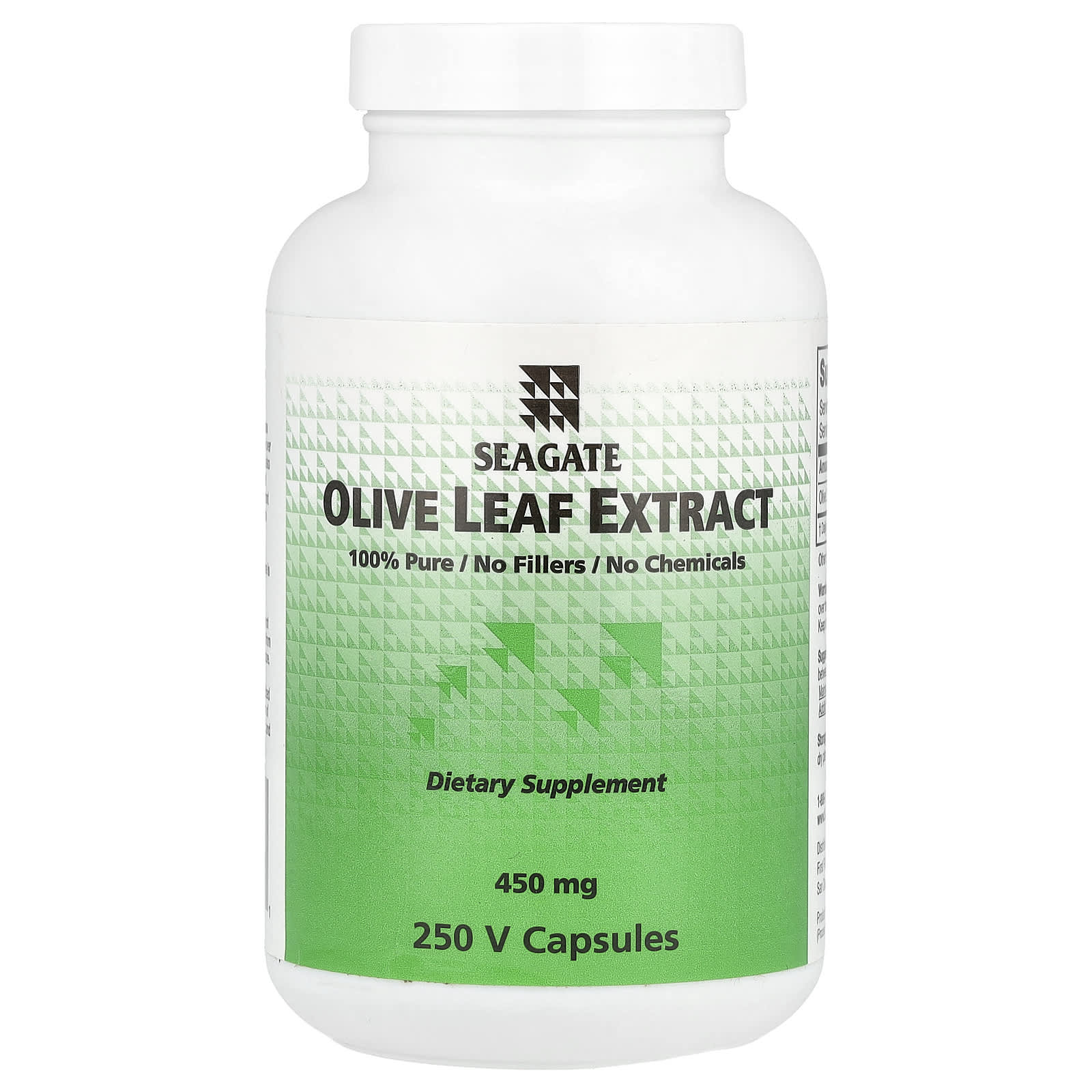 100% PureNo FillersNo ChemicalsDietary SupplementSeagate is the actual manufacturer of this product. Seagate workers harvest these leaves from our local trees each winter. The olive trees are grown without the use of any chemicals or pesticides.Extraction: Seagate uses a freshwater, mechanical concentration process without the use of any chemical, solvent, or high temperature. There are over 8 phytochemicals besides oleuropein that are found in olive leaves, and also in olive oil, and in the bark and roots of the olive tree. Seagate Olive Leaf Extract does not alter the delicate structure and balance of these important natural phytochemicals which have allowed this plant to survive in nature unchanged in over 10,000 years.Purity: Each batch of extract is tested by independent laboratories. There is no filler or excipient in this or any Seagate product.Oleuropein controversy: Most “manufacturers” of olive leaf extract do not actually process their own products, but are just resellers that purchase from other suppliers, and probably have never seen an olive tree growing in nature. In order to distinguish their product’s potency and quality from their competitors, most of these companies specify their oleuropein standardized to some level on their labels. However, the separation and concentration of oleuropein has no effect on increasing the potency of Olive Leaf Extract, and can actually cause the product to become inactive.Dietary support may be needed to protect you against resistant strains of microorganisms. Seagate Olive Leaf Extract contains natural phytochemicals, including oleuropein, to help support good health.