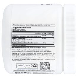 Bisglycinate Chelate Phospholipid ComplexBioavailableDietary SupplementBioPerine®Essential PhospholipidsVeganNon-GMOSoy-FreeDairy-FreeGluten-FreecGMP Certified ManufacturingFeel DifferentCodeage Liposomal Magnesium glycinate formula provides 350 mg of magnesium bisglycinate chelate per serving.This formula includes a liposomal magnesium mineral blend with non-GMO phospholipids from sunflower oil and sunflower lecithin for a plant-based supplement.Codeage Liposomal Magnesium capsules supplement features BioPerine® black pepper fruit extract.