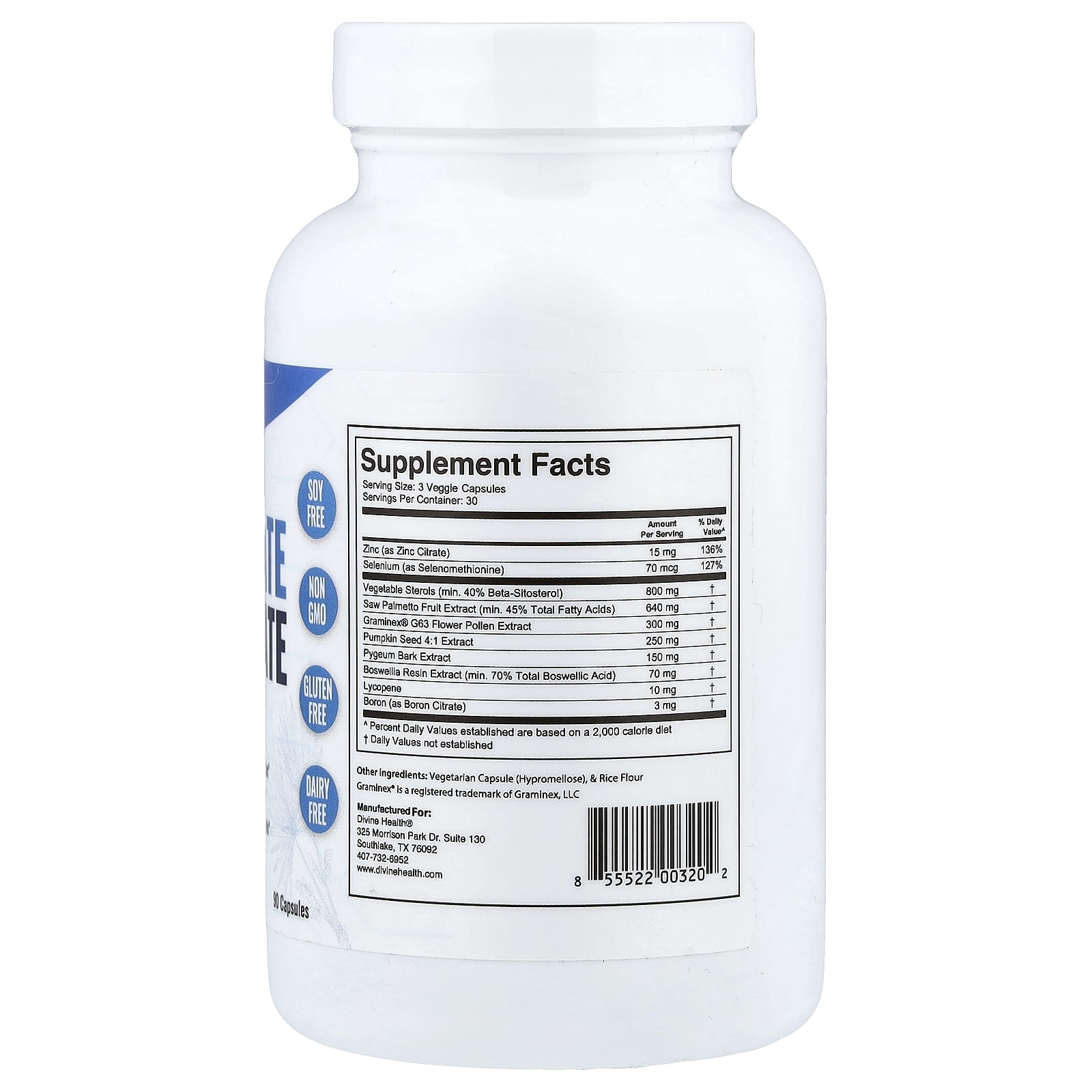 Promotes Healthy Prostrate FunctionSupports Reduced InflammationPromotes Healthy Cholesterol LevelsRich Source of AntioxidantsDietary SupplementSoy FreeNon-GMOGluten FreeDairy FreeFormulated by Dr. Don Colbert, M.D., Divine Health’s Ultimate Prostate Formula is a physician-developed supplement crafted to support healthy prostate function and promote urinary comfort for men aged 40 and up. This formula provides proactive support for overall wellness and vitality.This science-backed formula features a powerful blend of natural ingredients, including Beta-Sitosterol, Saw Palmetto, and Lycopene. These ingredients work synergistically to help maintain healthy prostate tissue, support bladder comfort, and protect prostate cells from oxidative stress.