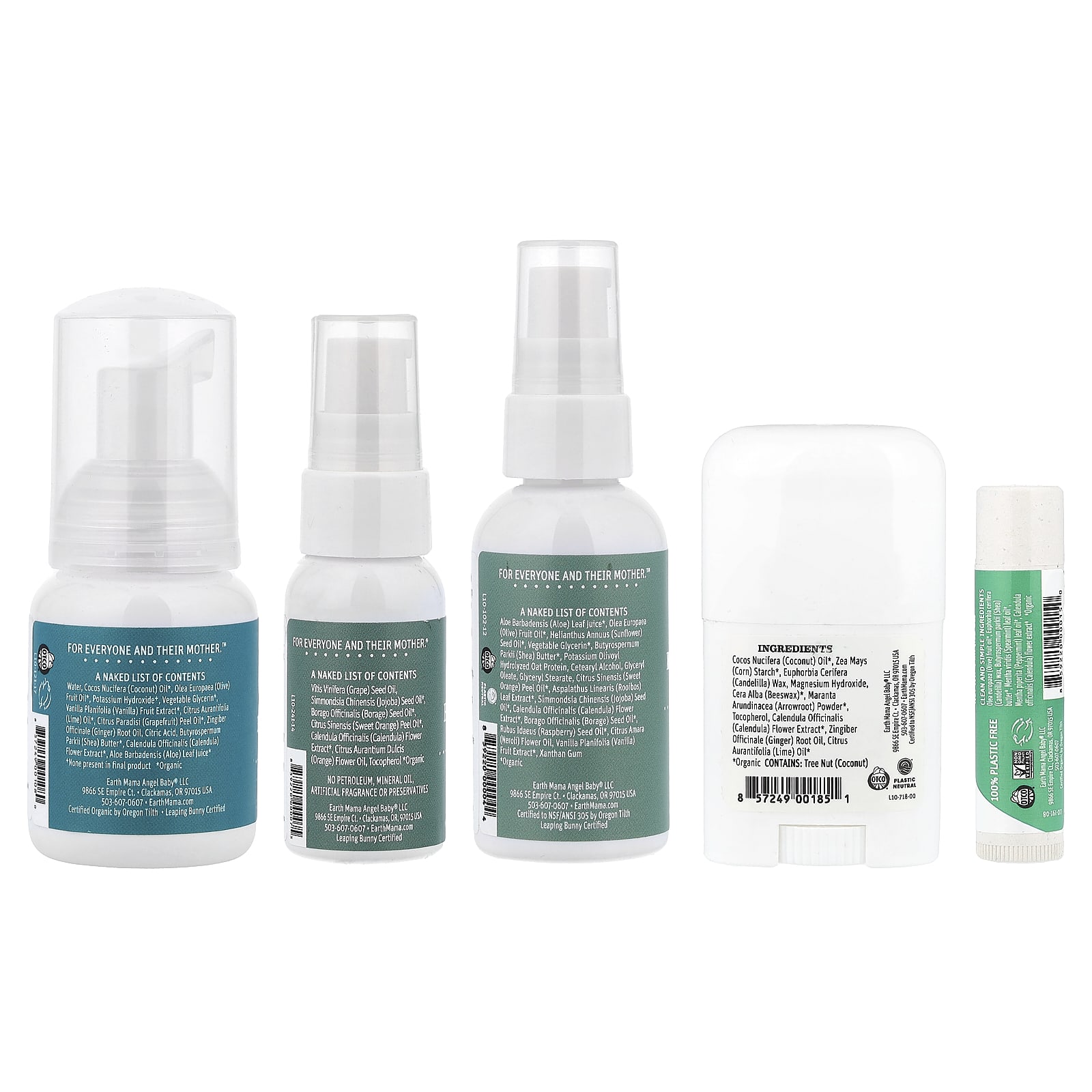 Organics Travel Size Pregnancy Must-Haves Gift Set Includes Travel-Sized:Ginger Fresh Deodorant, 0.5 oz (15 g)Belly Butter, 1.85 fl oz (55 ml)Belly Oil, 1 fl oz (30 ml)Mint Herbal Lip BalmGinger Fresh Body Wash, 1.67 fl oz (50 ml)Pregnancy brings it all on, so here’s a special gift that says “I get it. This will help.”Welcome to a lifetime of your heart (and body) growing in ways you never expected. You’ll enjoy decades of research and herbal wisdom inside to help protect and soothe your changing body during this happy ride, so buckle up!Ginger Fresh Deodorant For Everyone And Their Mother®NSF®Leaping Bunny®; Cruelty-Free Certified Organic by Oregon Tilth Plastic Neutral Your body’s working hard to grow that baby! Formulated especially for pregnant and breastfeeding mamas with sensitive skin (and sensitive noses too!), this little deo will keep you smelling fresh with all those hormones and show love to the lymph nodes with clean, organic ingredients. Never any aluminum, artificial fragrance or other gross ingredients. Belly Butter Skin Nourisher & Day-Maker For Everyone And Their Mother®NSF®Leaping Bunny®; Cruelty-Free Certified Organic by Oregon Tilth Plastic Neutral On a scale from 1 to OMG, that growing bump is off the charts adorable. Aaaaand, it can also get pretty itchy with the making-room-for-baby it needs do to. Soothing and incredibly moisturizing, this luxurious lotion is packed with organic herbs and essential oils that encourage skin’s natural elasticity so your skin is soft, comfortable and just happens to smell heavenly too. Pro tip: it’s good for all your parts, pregnancy not required.Are you walking around with the cutest, itchiest baby bump ever? Or do you have dry skin in general? Belly Butter’s infusion of organic rooibos and calendula pampers your skin, while organic borage seed oil encourages skin’s natural elasticity. It’s certified to the NSF/ANSI 305 Standard for Personal Care Products Containing Organic Ingredients and Leaping Bunny Certified and it’s nourishing for everyone – whether you’re growing another human or not.Belly Oil Light Herbal Oil For Everyone And Their Mother®Leaping Bunny®; Cruelty-Free Plastic Neutral Perfectly paired with Belly Butter, this intensely moisturizing all-over body oil nourishes and comforts all the expanding parts for intense, non-sticky hydration. Made with skin-softening, delicately scented organic oils, this easily absorbed oil encourages skin’s natural elasticity and is perfect for after showers or baths. Oh, that glorious belly… that itches like a mother. Belly Oil is infused organic borage seed oil and neroli pure essential oil, traditionally used to help encourage the skin’s natural elasticity. Best of all? It doesn’t discriminate: think skin-softening hydration for dry skin on any body – young, seasoned, pregnant or not.Mint Herbal Lip Balm Sweet and Fresh Just Like You100% Plastic FreeLeaping Bunny®; Cruelty-Free Certified Organic by Oregon Tilth Non GMO Project Verified Clean Simple Ingredients Give your lips the extra hydration they need (especially during all that hard breathing work) with your new favorite lip balm. Refreshing mint makes your lips want to whistle Dixie without petrolatum, artificial flavors or colors. Sorry in advance – Mint Herbal Lip Balm may become habit forming. Ginger Fresh Body Wash All-Purpose Castile SoapLeaping Bunny®; Cruelty-Free Certified Organic by Oregon Tilth For Everyone And Their Mother®Ridiculously RefreshingRefreshing ginger, lime and grapefruit castile soap, made with organic olive oil. shea butter and calendula. In other words, a sumptuous body wash that’s extra welcome if you have the occasional morning sickness – that lasts all day.Ginger Fresh Body Wash is your new cleaner clean BFF for babies, pregnant mamas, your tallest friends, the dog … pretty much everyone and their mother! Not to mention a non-toxic multi-use cleaner for fruits and veggies, pets and the entire house – front to back, top to bottom. Made with organic herbs and oils. 100% bona fide.