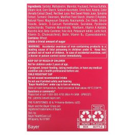 Accidental overdose of iron-containing products is a leading cause of fatal poisoning in children under 6. Keep this product out of reach of children. In case of accidental overdose, call a doctor or poison control center immediately.Keep out of reach of children.Not for children under 2 years of age.If pregnant, breast-feeding, taking medication, or have any medical condition ask a health professional before use.Child resistant cap.Do not exceed recommended intake.Do not use if printed safety seal bearing “Bayer HealthCare” under cap is torn or missing.Store at room temperature. Avoid excessive heat above 40°C (104°F).