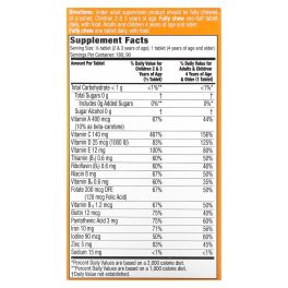 Sorbitol, sodium ascorbate, maltodextrin, mannitol, fructose‡, ascorbic acid, ferrous sulfate, corn starch, vitamin Eacetate, stearic acid, modified food starch, citric acid; less than 2% of: beta-carotene, biotin, color (annatto extract [seed], red beet juice, red sweet potato juice, spirulina extract, turmeric oleoresin), d-calcium pantothenate, folic acid, gelatin, lactic acid, magnesium stearate, natural flavor, niacinamide, potassium iodide, pyridoxine hydrochloride, riboflavin, silicon dioxide, sucralose, thiamine mononitrate, vitamin A acetate, vitamin B12 (cyanocobalamin), vitamin D3 (cholecalciferol), zinc oxide.Contains: wheat.‡adds a trivial amount of sugar