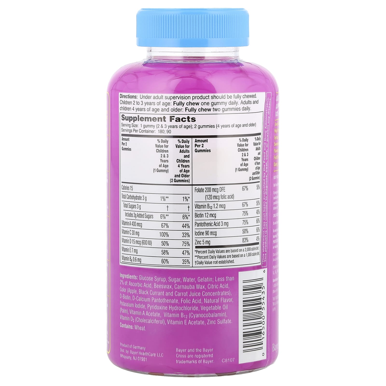 Helps Support Immune HealthPediatricians’ #1 ChoiceChildren’s Chewable Vitamin Brand Colors From Natural Sources Great Tasting Gummies Your Kids Will Love!BayerFree Of:High Fructose Corn SyrupArtificial FlavorsArtificial SweetenersRich in 10 Key Nutrients Important for KidsSupports:Eye Health – Vitamin A, C & EGrowth & Development – Vitamin A, D, Zinc & IodineImmune Health – Vitamin A, C, D, E & ZincBone Health – Vitamin DEnergy Metabolism – Vitamin B5, B6, B12 & Biotin (to help convert food to energy).†Refers to vitamins A, C, D, E, B5, B6, B12, biotin, iodine and zinc