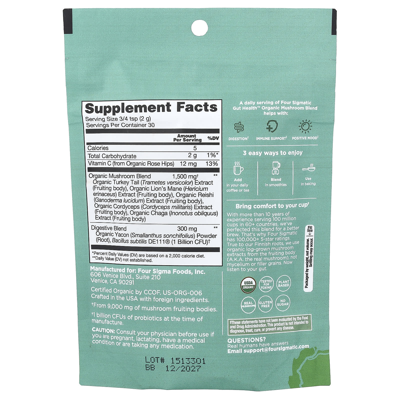 Four Sigmatic, Gut Health, Organic Mushroom Blend, Caffeine Free, 2.12 oz (60 g)