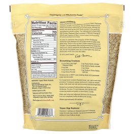 Resealable PackageAn Employee-Owned CompanyTo Your Good Health® – Bob MooreGluten FreeYou Can See Our Quality®Non-GMO Project VerifiedUSDA OrganicK-PareveInspiring Joy With Wholesome Foods™Certified Organic by QAIDear Friends, Milling flaxseeds is like opening a treasure chest. Flaxseeds contain a wealth of nutrients, but as whole seeds most of these nutritional treasures are locked away. Milling the seeds into meal gives your body access to the amazing nourishment stored within. Two tablespoons of Bob’s Red Mill Golden Flaxseed Meal contains 1,700mg of Omega-3 (ALA) and 3 grams of fiber. Contains 4 grams of total fat per serving. See nutrition information for fat content. In order to maintain the integrity of the wholesome nutrients in the flaxseed oil, the seeds must be milled with great care. That is why we don’t make compromises or cut comers. Our proprietary flax milling machinery keeps the meal cool, which preserves the freshness of those precious oils. It’s not the fastest way, but it’s the right way, and it is absolutely worth the time and effort. To your good health, Bob Moore