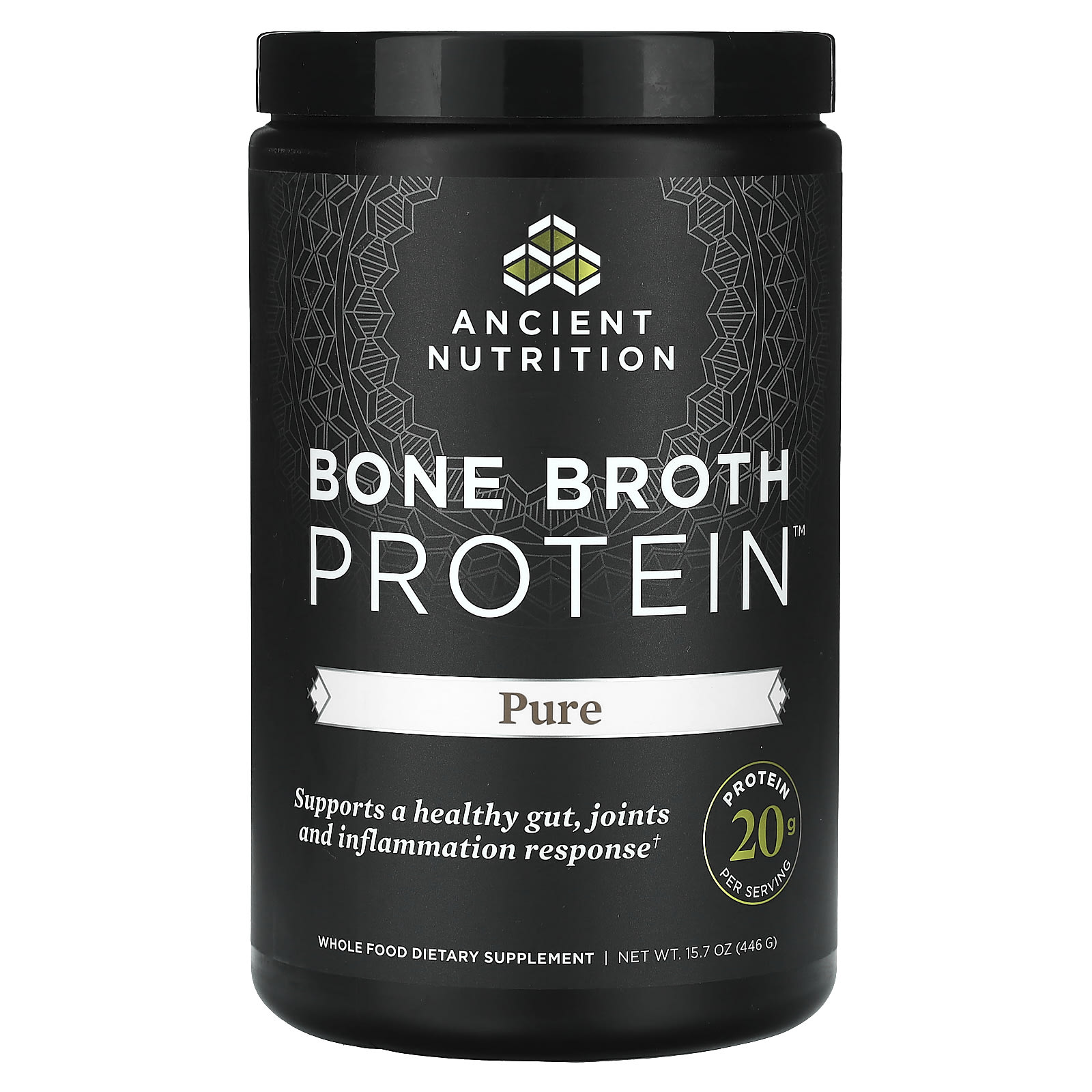 Ancient Nutrition, Bone Broth Protein, Pure, 15.7 oz(446 g)