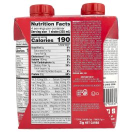 Strong†30 g Sustained Absorption Protein*1 g Sugar*2 g Net Carbs**23 Vitamins & Minerals*7 g Prebiotic FiberNaturally & Artificially FlavoredMuscle + Gut Health Support ComplexCertified Gluten FreeKosher Dairy*Per serving – See nutrition facts or calories content. 5 g of Total Fat.†Helps maintain lean muscle mass when used in conjunction with an exercise routine.** Total Carbs (9 g) – Fiber (7 g) = 2 g Net Carbs