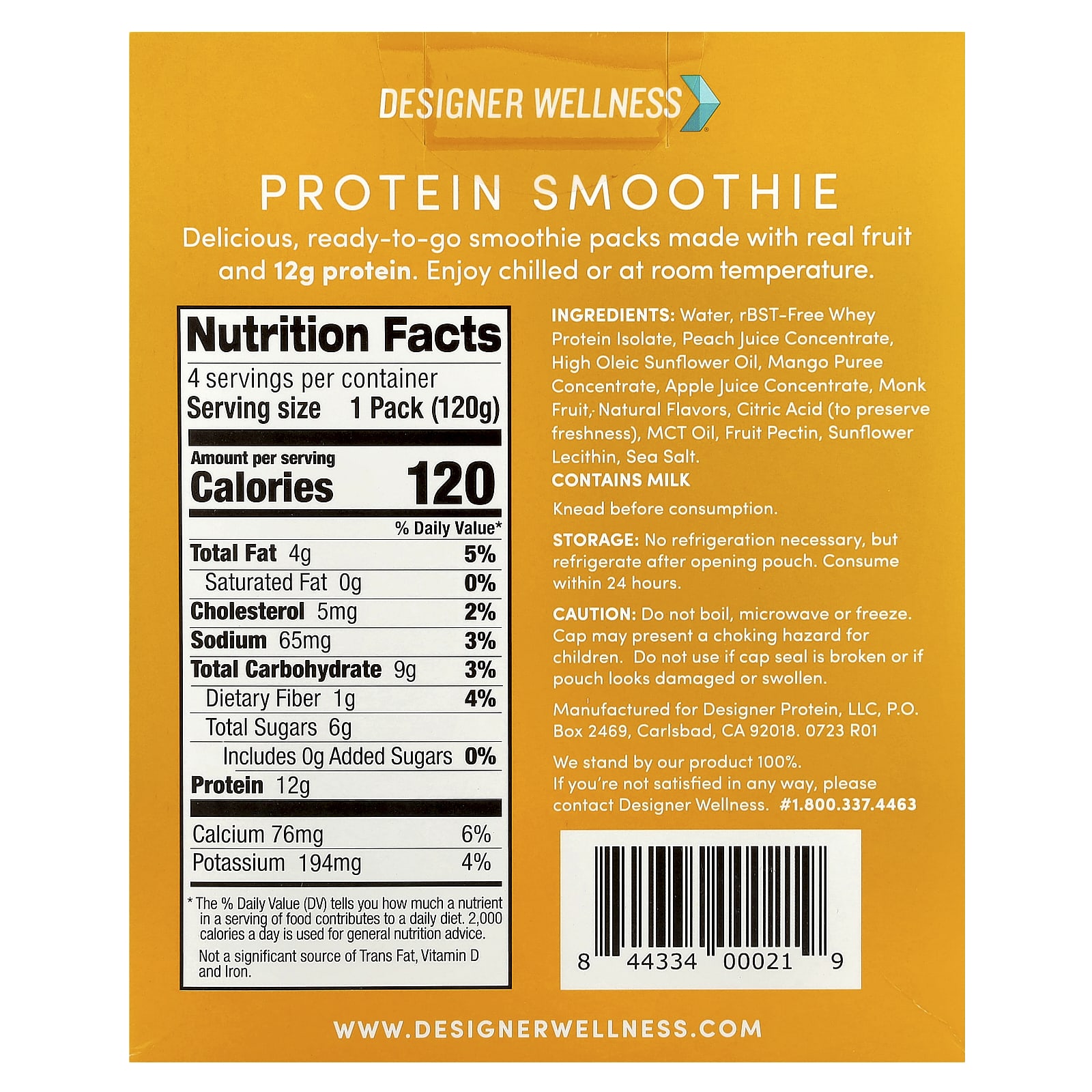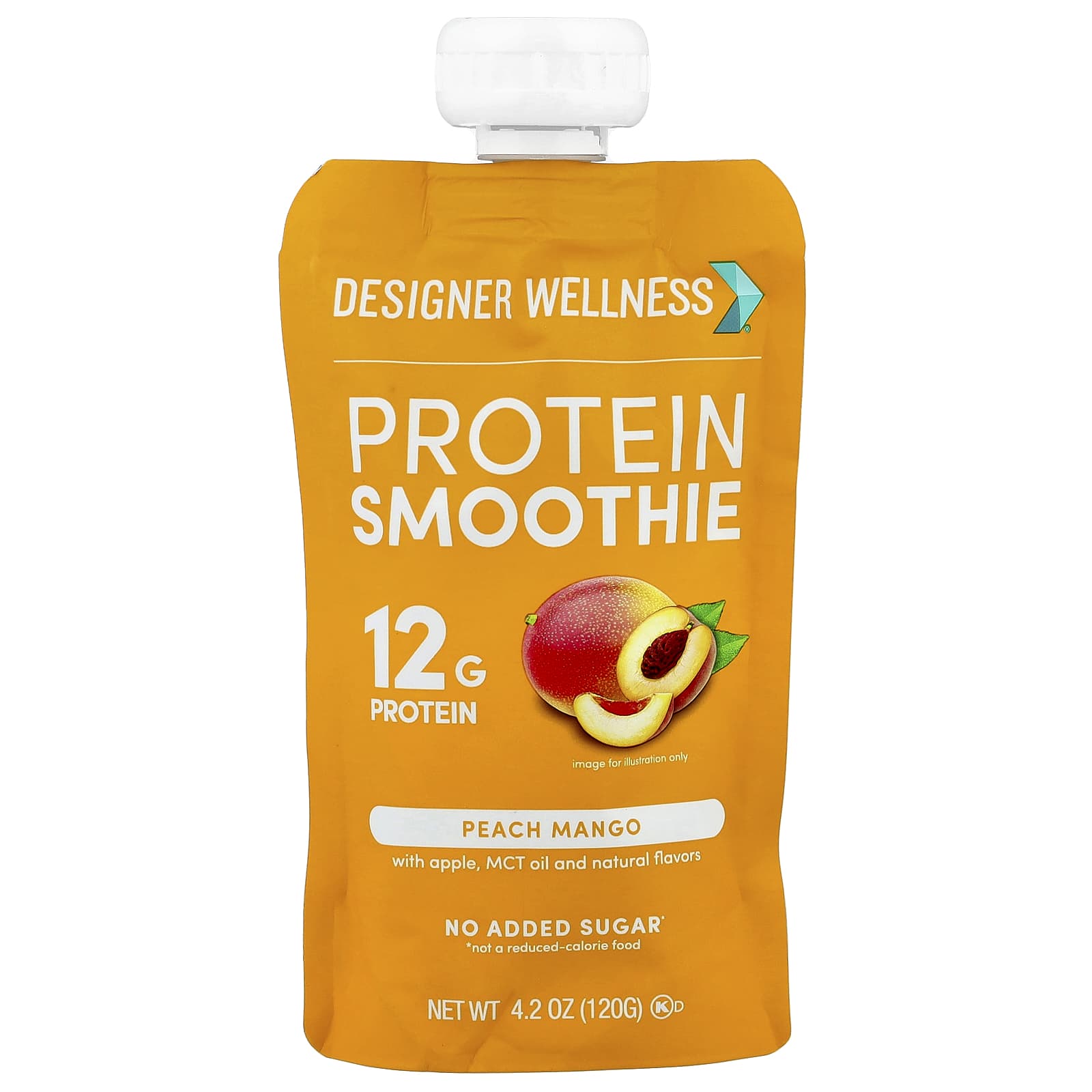 Designer Wellness, Protein Smoothie, Peach Mango, 4 Packs, 4.2 oz (120 g) Each