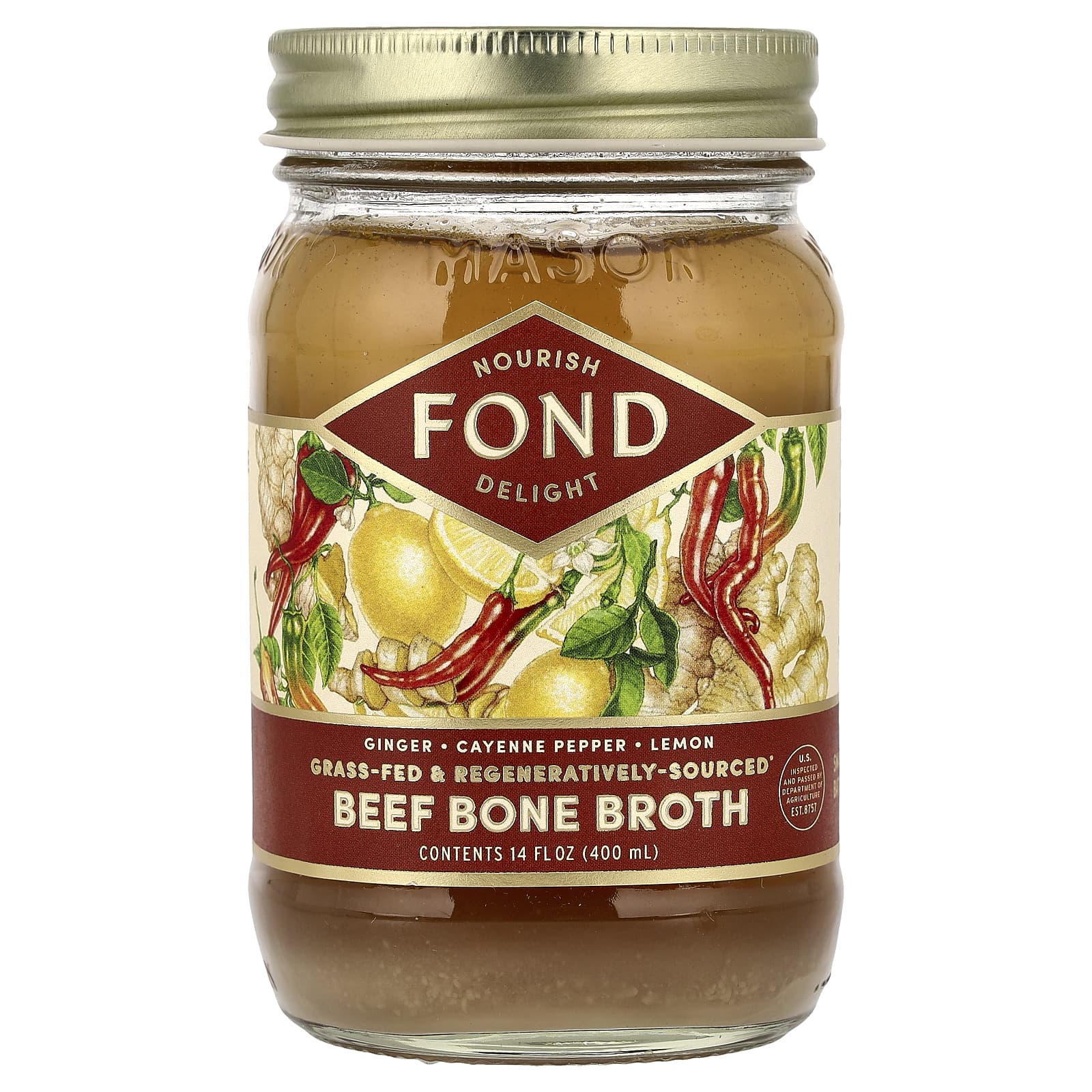 FOND Bone Broth, Beef Bone Broth, Ginger & Cayenne, 14 fl oz (400 ml)
