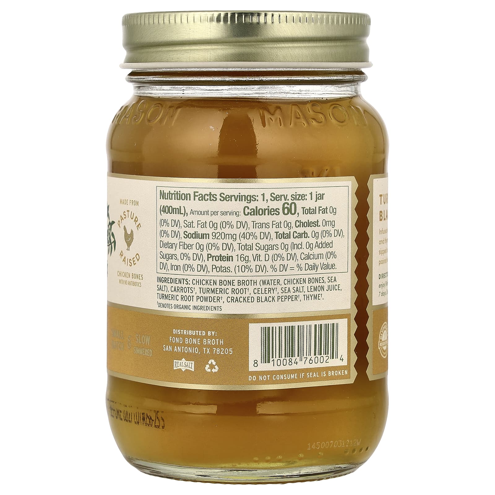 FOND Bone Broth, Chicken Bone Broth, Turmeric & Black Pepper, 14 fl oz (400 ml)