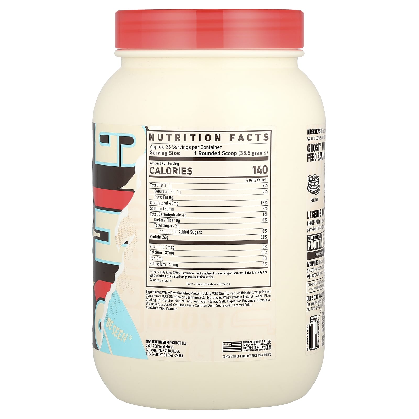 140 Calories 26 g ProteinNaturally And Artificially FlavoredBe Seen®No Amino SpikingSoy FreeGluten FreeGHOST® Whey was conceived to feed savagery around the clock.MorningPost WorkoutThroughout The DayBefore BedGHOST® WHEY protein combines a premium 100% whey protein blend with natural digestive enzymes and amazing, authentic flavor collabs.FullDisclosureProteinWhey Protein Isolate 90%14.53 g Delivering 12.5 g ProteinWhey Protein Concentrate 80%13.1 g Delivering 10 g ProteinHydrolyzed Whey Protein Isolate2.98 g Delivering 2.5 g ProteinOur Scoop’s always on top – The patented Ghost® nested scoop ensures you never go digging for your scoop again.