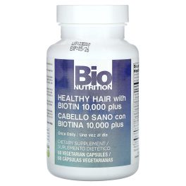 Bio Nutrition, Healthy Hair with Biotin 10,000 Plus, 60 Vegetarian Capsules