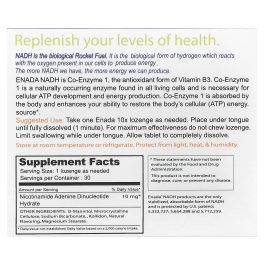 Dietary SupplementReturn To HealthFast-ActingStaminaImmunity SupportMental ClarityNADH Body Technology Be Greater Guaranteed for Purity, Freshness and Potency Replenish your levels of health.NADH is the biological rocket fuel. It is the biological form of hydrogen which reacts with the oxygen present in our cells to produce energy. The more NADH we have, the more energy we can produce. ENADA NADH is Co-Enzyme 1, the antioxidant form of Vitamin B3. Co-Enzyme 1 is a naturally occurring enzyme found in all living cells and is necessary for cellular ATP development and energy production. Co-Enzyme 1 is absorbed by the body and enhances your ability to restore the body’s cellular (ATP) energy source.