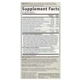 Vegetable cellulose (capsule), organic potato starch. Made without dairy or soy ingredients, peanut, tree nuts or shellfish. Manufactured in a facility that also processes soy, dairy, peanut, tree nuts and shellfish. No artificial colors or preservatives. Made in the U.S.A. from foods grown in the U.S.A. and other countries.