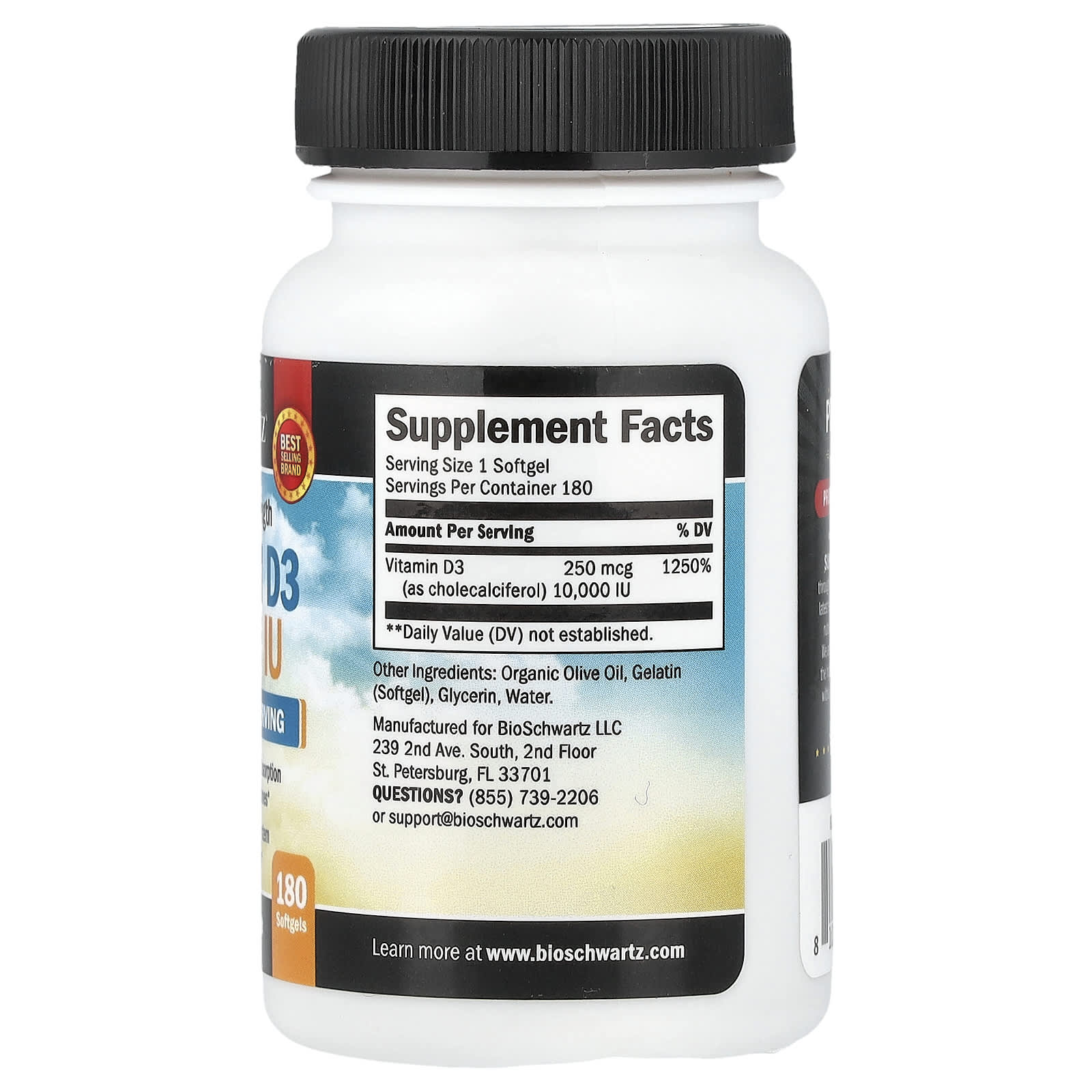 BioSchwartz, Maximum Strength Vitamin D3, 250 mcg (10,000 IU), 180 Softgels