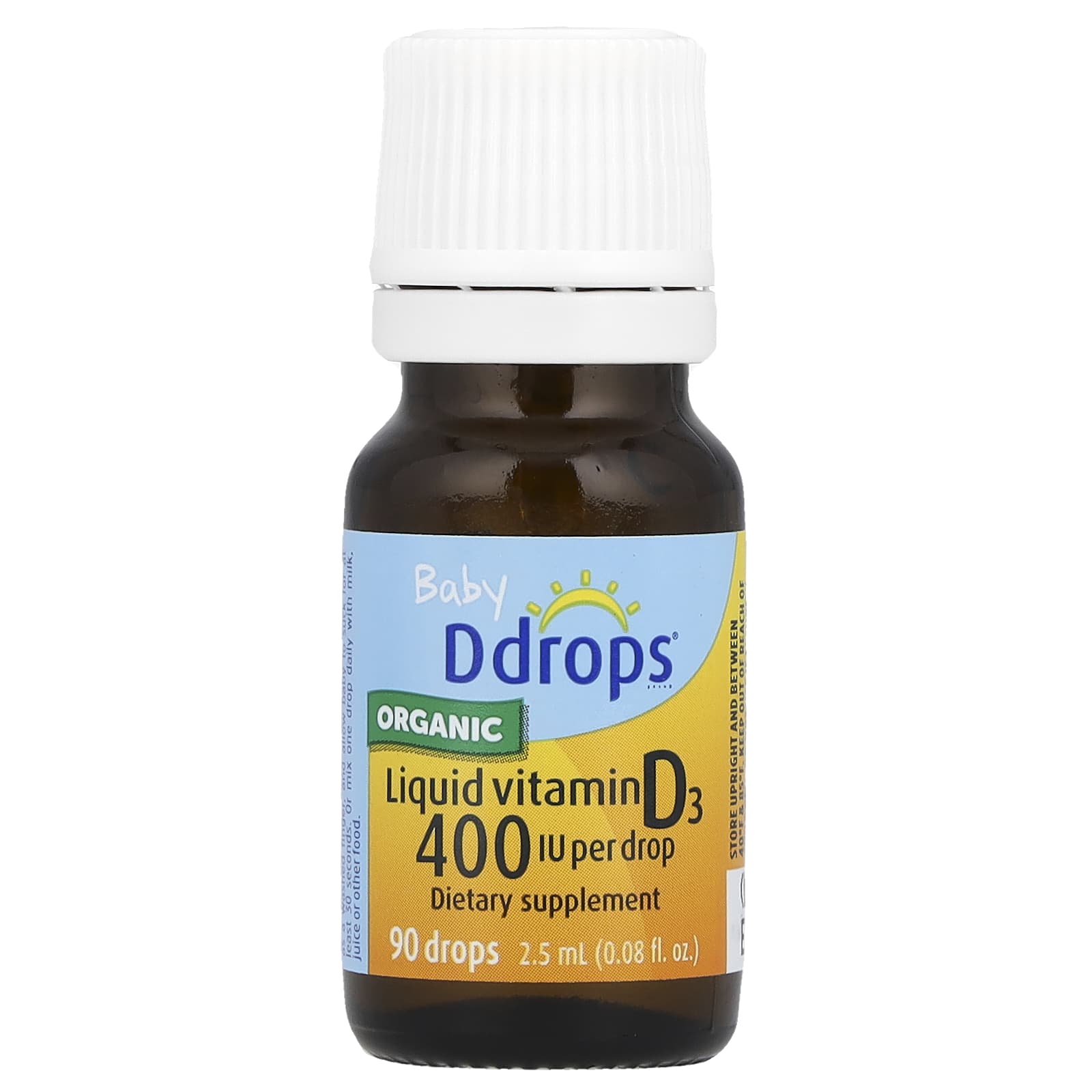 Ddrops, Baby, Organic Liquid Vitamin D3, 10 mcg (400 IU), 90 Drops, 0.08 fl oz (2.5 ml)
