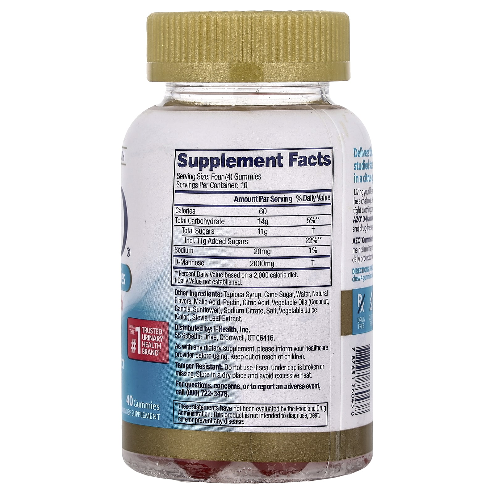 Clinical StrengthUrinary Tract HealthFrom The #1 Trusted Urinary Health Brand††Helps Cleanse, Flush, & Protect the Urinary TractD-Mannose Supplement Grapefruit & Tangerine With Other Natural FlavorsDrug FreeGluten FreeDairy FreeNon GMODelivers the 2,000mg clinically- studied strength of D-Mannose in a citrus gummy. Living your life and maintaining urinary health can be a challenge. Having sex, your cycle or wearing tight clothing can disrupt your urinary health. AZO® D-Mannose Gummies are the convenient and drug-free way to help maintain the urinary tract.AZO® Gummies help flush the urinary tract to maintain urinary tract cleanliness, providing extra daily protection when it matters most.††#1 Most Trusted Brand based on Total AZO Brand Nielsen data through 10/08/22 and the 2022 Pharmacy Times Survey (including Urinary Pain Relief and Bladder categories).