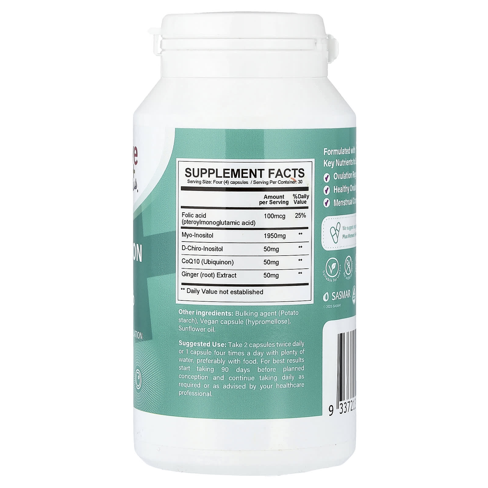 Myo & D-Chiro InositolSupports Cycle Regulation & Ovarian HealthWith CoQ10 + GingerDietary SupplementSuitable for VegansNo Artificial FlavorNo PreservativesGluten FreeWheat FreeBasmar QualityFormulated with Key Nutrients to Support Ovulation Regulation Healthy Ovulation Menstrual Cramps