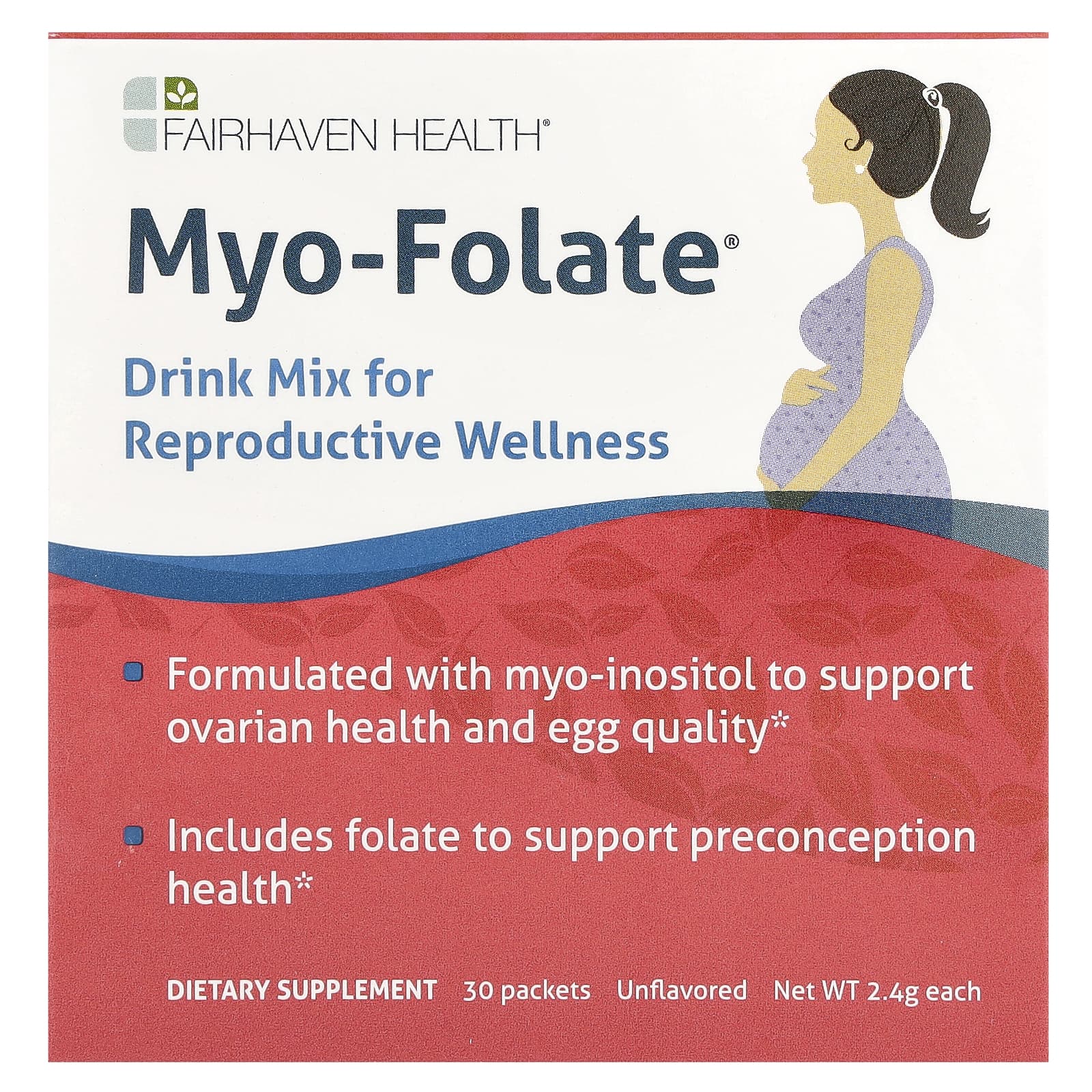 Fairhaven Health, Myo-Folate®, Drink Mix for Reproductive Wellness, Unflavored, 30 Packets, 2.4 g Each