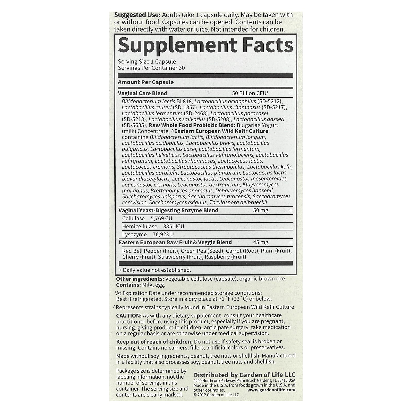 50 Billion Guaranteed!38 Probiotic StrainsVaginal Flora Balance and Urinary Tract HealthArrive Alive! Potency Promise Once DailyWhole Food Supplement NSF Certified Gluten-Free Maintaining a healthy bacterial balance in your digestive system is key to optimizing your overall well-being. Raw Probiotics Vaginal Care is a high potency, whole food probiotic formula specifically designed to promote healthy yeast balance and vaginal and urinary tract health. Vaginal Care Blend – Featuring eight clinically studied probiotic strains Digestive & Immune Health – 50 Billion CFU, typically containing 38 Probiotics with clinically studied Species plus Eastern European Wild Kefir Culture Yeast-Digesting Enzymes – With Cellulase, Hemicellulase and Lysozyme to help break down yeast cell walls